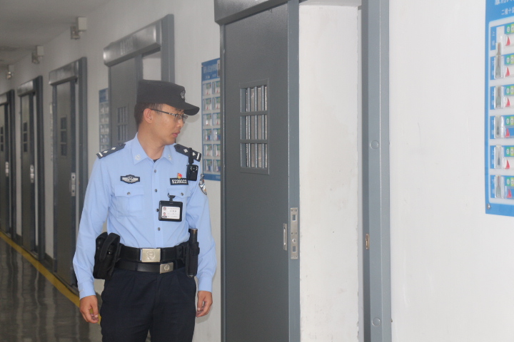 中秋之夜,监狱里灯火通明,却少了墙外过节的热闹喧嚣。赵飞像往常一样开始例行巡查。他迈着坚定的步伐,仔细检查着每一个角落,每一步都踏得沉稳有力。昏暗的灯光下,他的身影被拉得很长,显得有些孤单,但又无比坚毅。