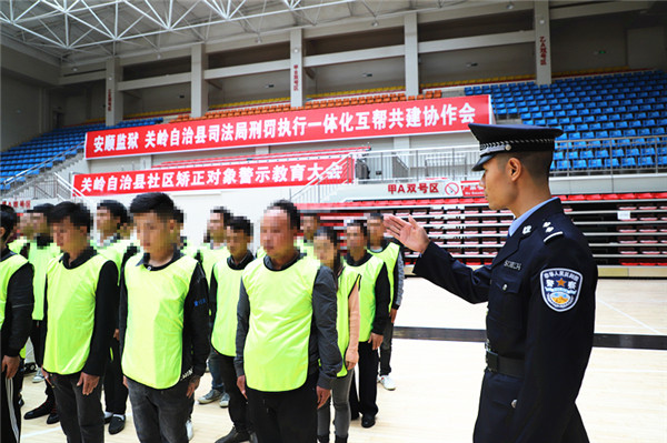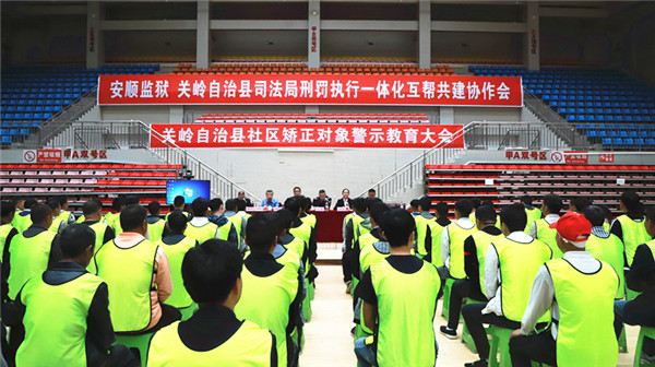 近日,安顺监狱携手关岭县司法局,为关岭县94名社区矫正对象开展“警示教育”活动。上好矫正第一课,进一步加强社区矫正对象的矫正意识,加大社区矫正执法力度,提高刑罚执行威慑力,深入推进刑罚执行一体化建设。