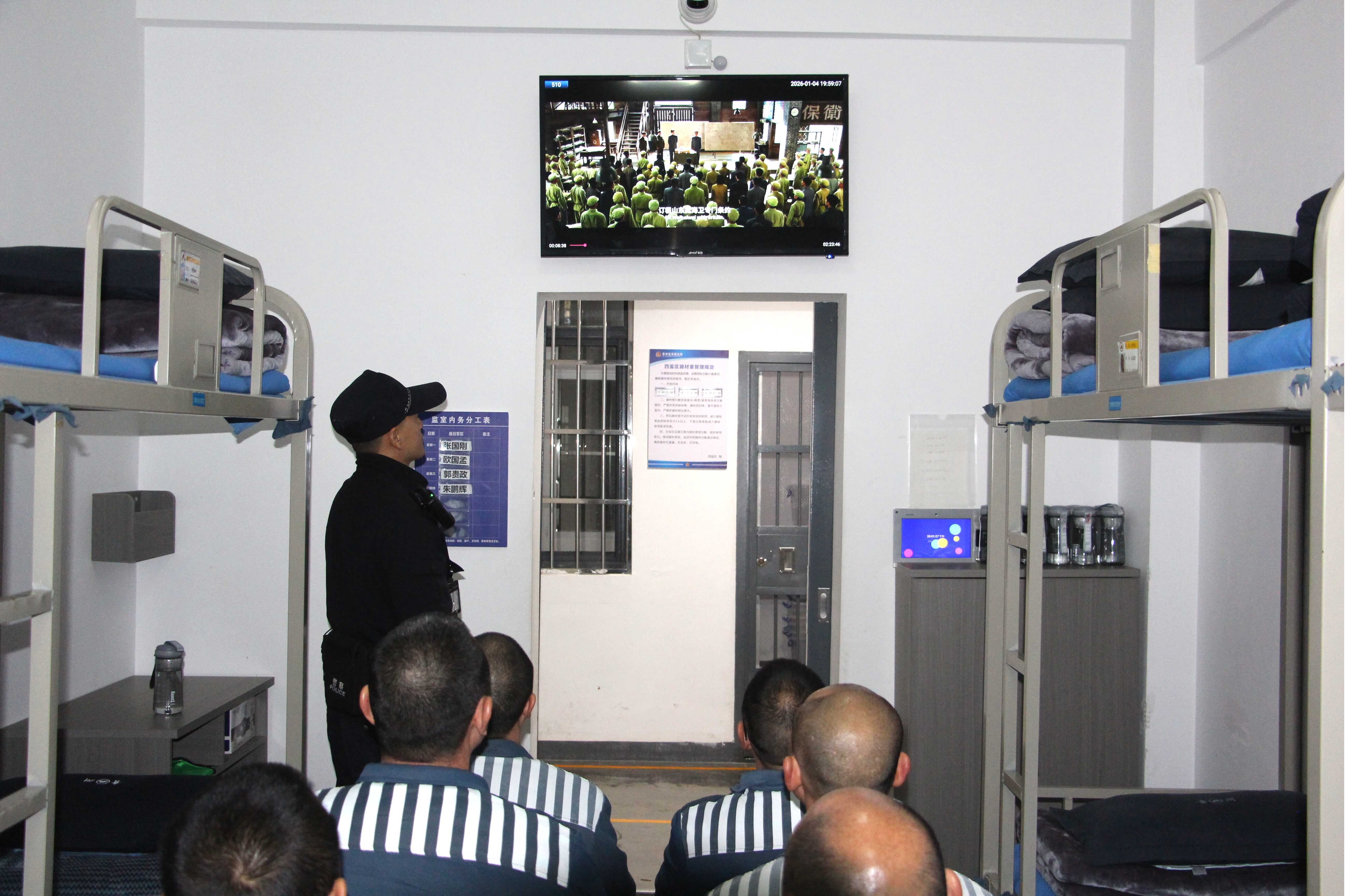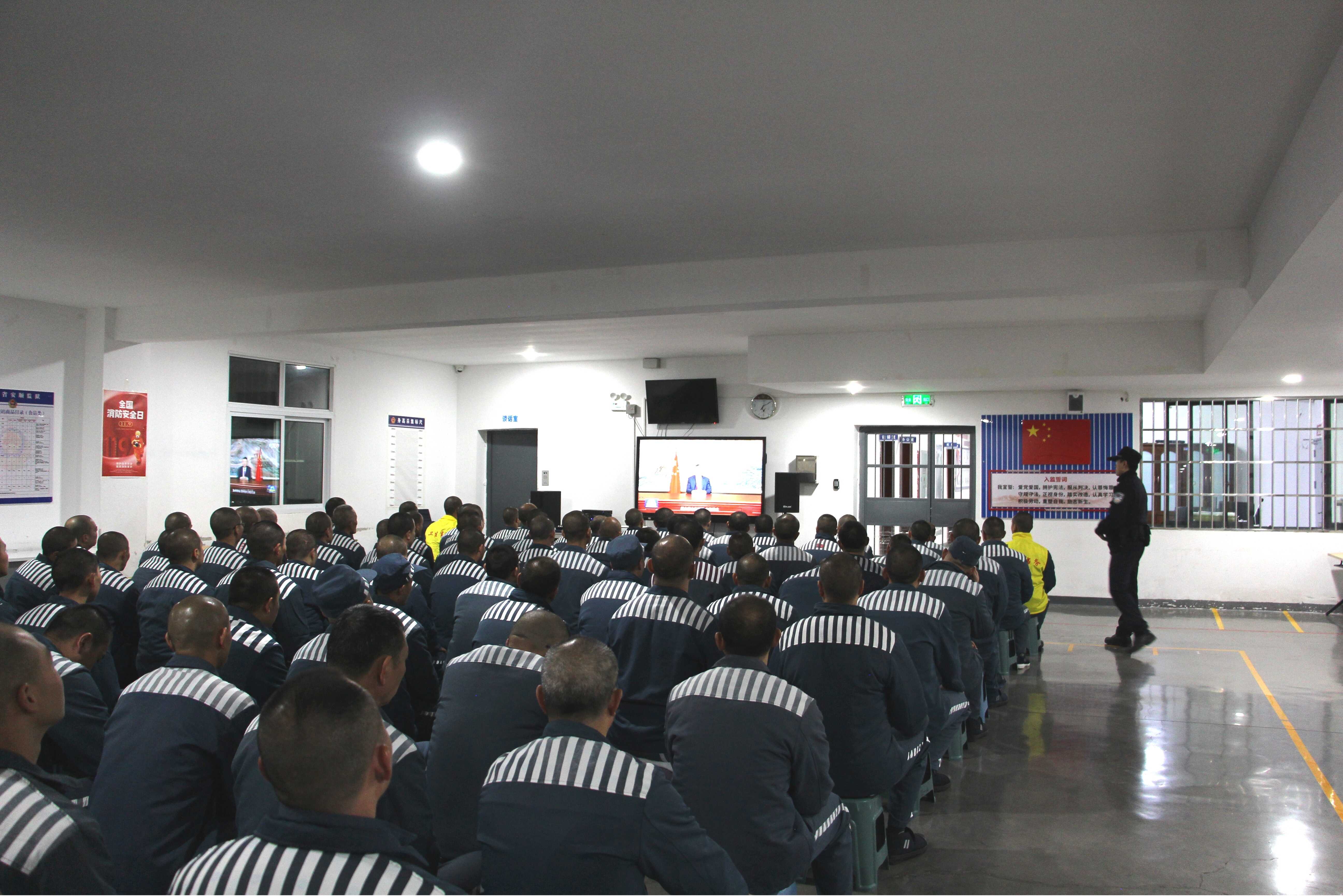 1月1日晚上7点,监狱组织罪犯集中收看习近平总书记2026年新年贺词,温暖而坚定的话语,传递出奋进新时代的磅礴力量。通过学习贺词精神,引导罪犯了解国家发展成就,增强国家认同感,珍惜改造机会,树立正确的价值观,以积极向上的心态面对刑期,规划未来,为其回归社会后成为守法公民奠定思想基础。