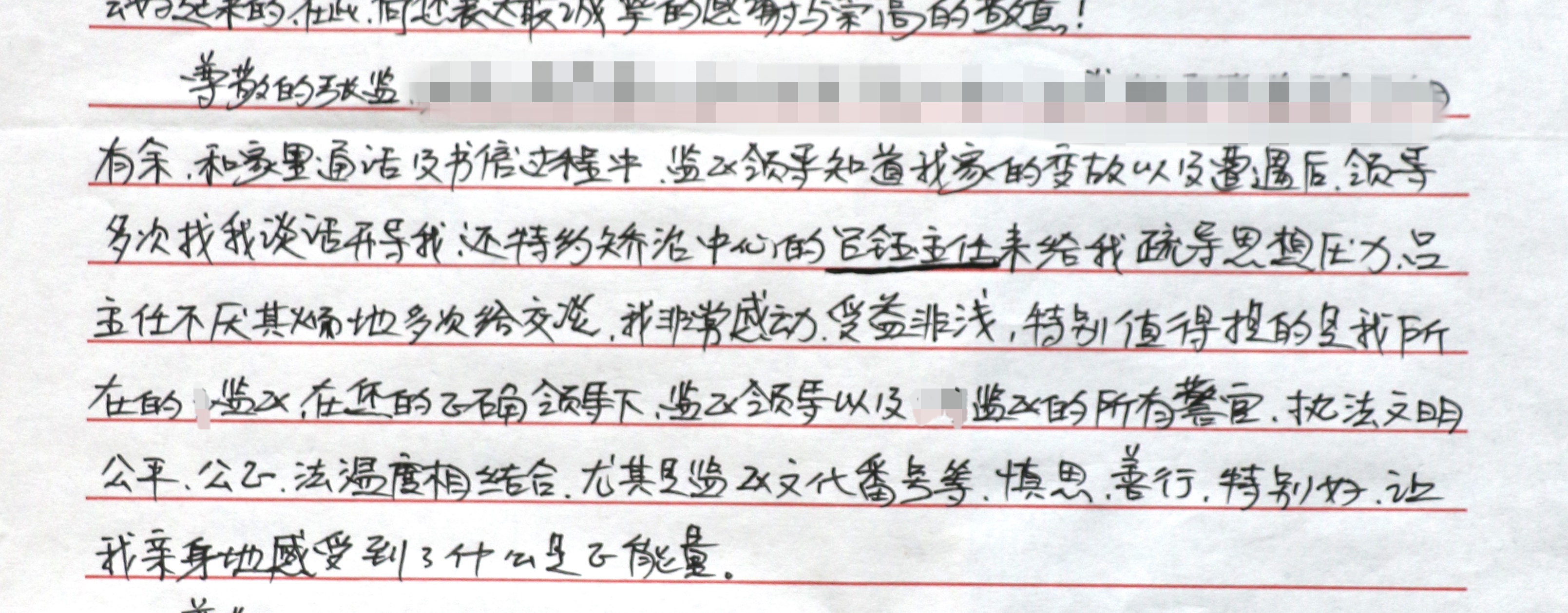 2024年小易因怨恨父亲,认为父亲是导致今天学习生活困境的罪魁祸首,导致高考失利,欲放弃学业,民警趁势引导,鼓励她继续学业:“读书是为自己争取更多选择”“这也是对父亲最好的支持”。父女冰释前嫌,小易决定复读,再战高考。之后的消息一个比一个明亮:“期末考试结束了,我想去看爸爸”“高考成绩出来了,400多分呢!”“录取了!”……一张录取通知书、一条条短信,见证着心结化开的每一步。