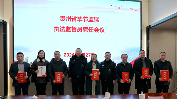 为进一步拓宽社会监督渠道,确保监狱刑罚执行工作更加的公正、透明和规范,1月27日,毕节监狱举办新一届执法监督员聘任仪式。来自毕节市人大、政协、司法行政、法律等社会各界的10名专业人士将对毕节监狱的执法工作开展常态化监督。
