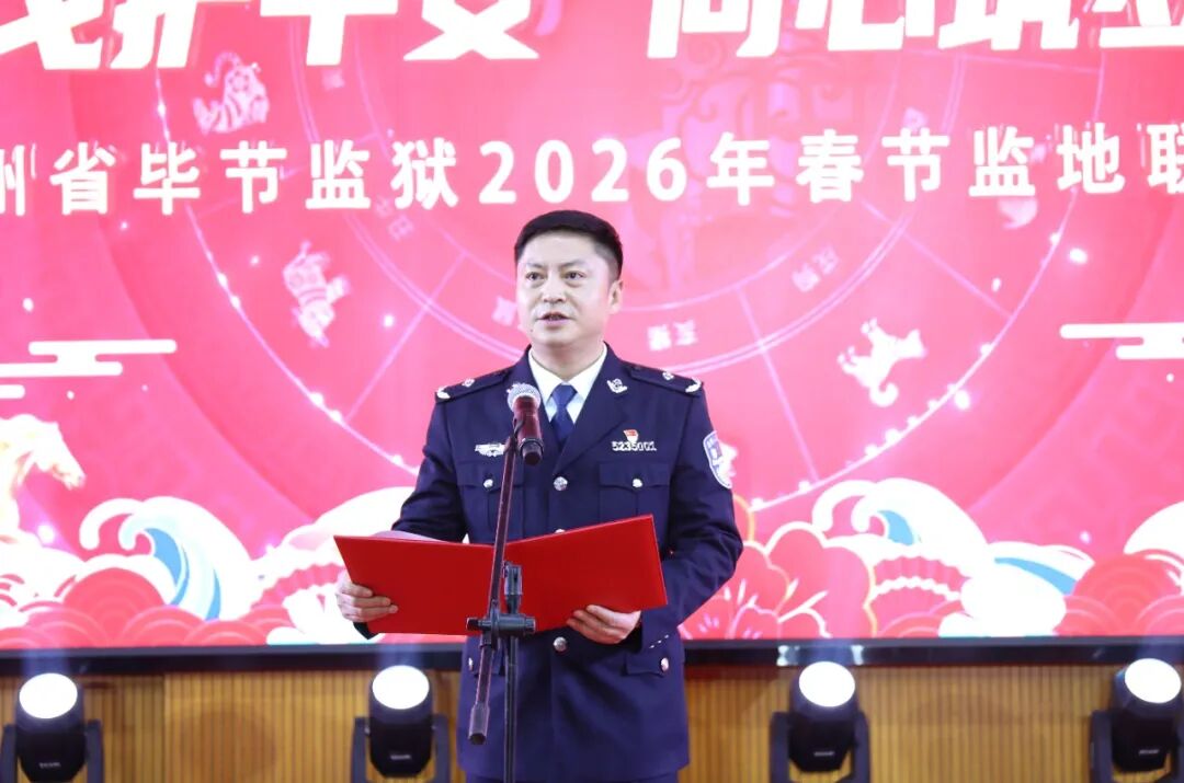 银蛇摆尾辞旧岁,金马奋蹄迎春归。2026年立春之际,为进一步深化监狱警营文化建设与监地互动交流实践,丰富“星火锻造”文化品牌内涵,以丰富文体活动愉悦民警职工身心,用文化浸润培育健康快乐的生活方式,切实推进活力警营、和谐警营建设,2月5日,毕节监狱举办“铁马金戈护平安 同心筑梦贺新春”联谊会,邀请毕节市司法局、武警毕节支队、中国银行毕节分行、中国建设银行毕节市分行、中国电信毕节分公司、中国移动毕节分公司、中国太平洋人寿保险毕节中心支公司、鸭池镇人民政府等8家单位同台献艺,共迎新春。