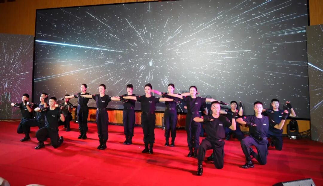 最后登场的舞蹈《狱战旋律,警舞激昂》,以刚劲舞姿演绎监狱民警日夜坚守、奋战高墙的情景,展现新时代监狱人民警察的激昂奋进风采,将联谊会的演出氛围推向高潮。