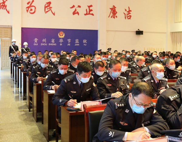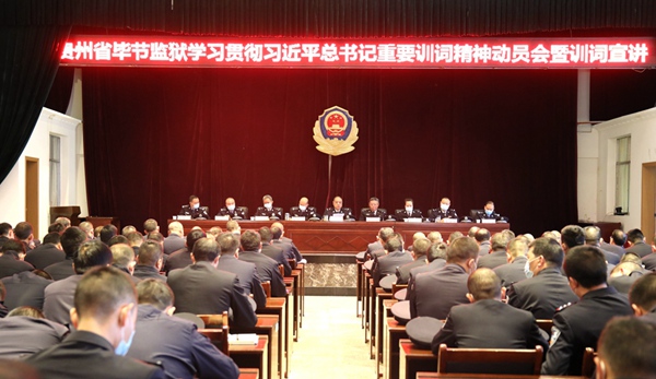 10月9日,毕节监狱召开“以案促改”警示教育大会暨学习贯彻习近平总书记重要训词精神宣讲,深入学习习近平总书记重要训词精神,进一步筑牢民警防腐拒变的思想道德防线,深化巩固毕节监狱专项警示教育成果。党委班子成员及除在岗执勤、出差、学习培训人员外全体民警参加会议。