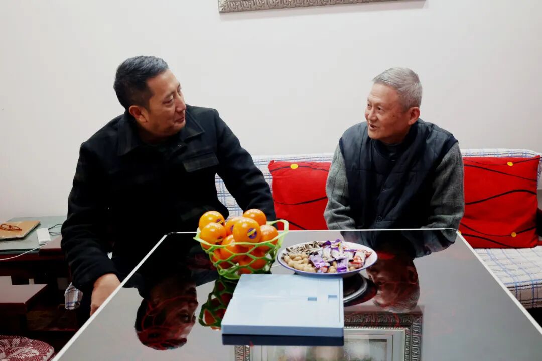 1月21日,监狱党委副书记、政委龙啟良和党委委员、政治处主任刘传敏带领人事警务科和离退休干部科相关人员分别入户走访慰问了因公牺牲民警任海燕和因公牺牲民警杨再忠家属、退休省级劳模王庆双、因公伤残退休干部肖国梁和退休困难党员葛万里。