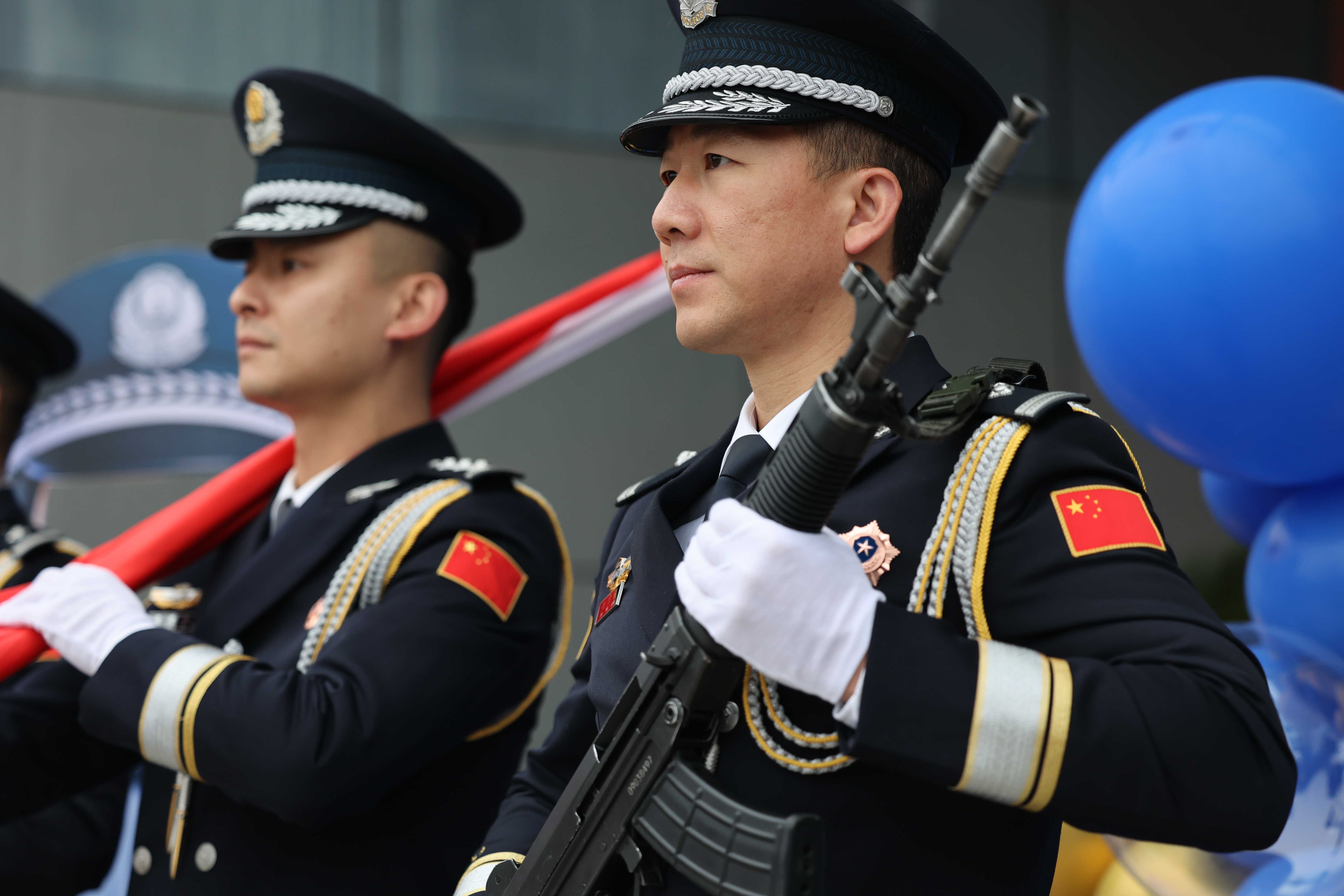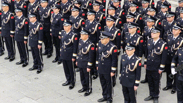 “伟大的祖国赋予我使命,复兴的民族给予我力量……”伴随着《中国人民警察警歌》的激昂旋律,护旗队员迈着铿锵有力的步伐,昂首挺胸护送警旗入场。全体民警向警旗庄重敬礼,注视着中国人民警察警旗缓缓升起,猎猎飘扬。