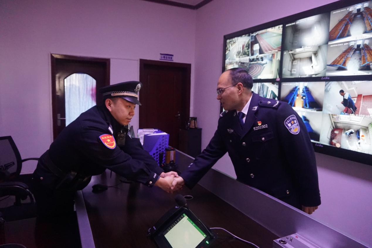 在金西监狱,涂晓华政委详细了解春节期间的警力部署和民警履职情况,检查门岗民警工作情况和特警队巡逻情况,查看监区分控中心运转情况,并与一线民警亲切交谈,向他们致以新春问候!