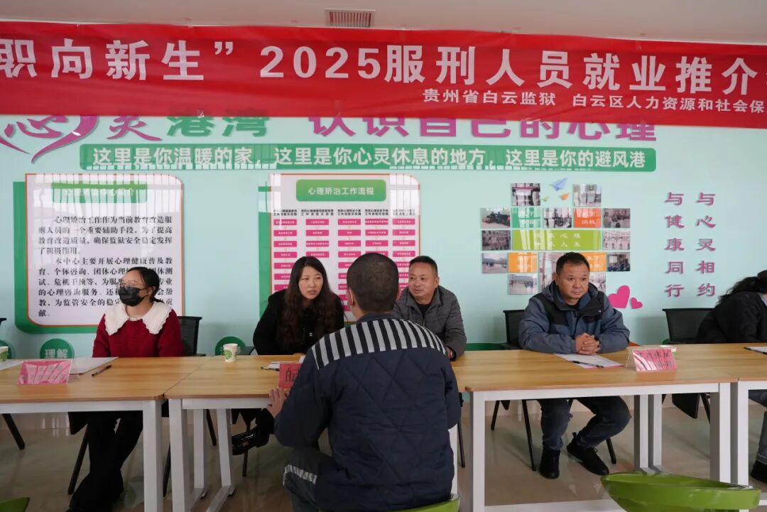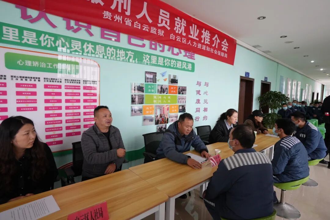 为深入贯彻落实司法部“五项工作”要求,充分发挥就业推介在安置帮教工作中的积极作用,助力刑释人员更好地回归社会,融入社会,近日,贵州省白云监狱联合白云区人力资源社会保障局共同举办“破茧启航 职向新生”服刑人员就业推介会。白云区人力资源社会保障局相关领导、6家社会企业代表及80名临释服刑人员参与活动。