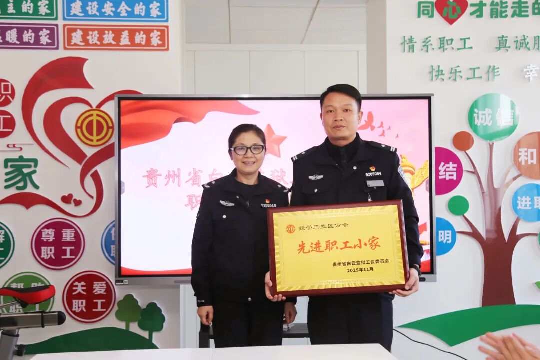 11月24日,贵州省白云监狱党委委员、副监狱长、工会主席杨俊带队来到了三监区分会、八监区分会,对二个分会建成的“先进职工小家”进行授牌。