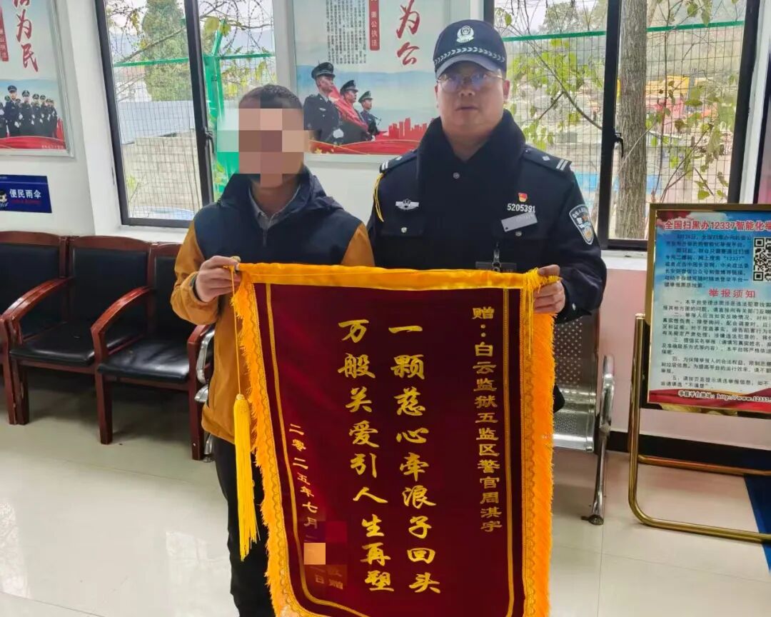 这种用心用情的投入,最终收获了来自社会的认可。不久前,刑满释放人员李某专程回到监区,送上了一面写着 “一颗慈心牵浪子回头、万般关爱引人生再塑”的锦旗。