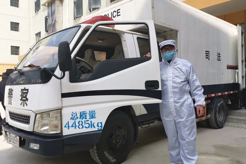 疫情期间,监狱严格执行外来车辆管理,做到四不交叉,每辆进监车辆均需全面消杀,在静置30分钟后,于AB门内进行驾驶员零接触换驾。由于第二批入监封闭管理的民警中没有专职驾驶员进行换驾,拥有A类驾照的贾渝便主动承担起了进出监车辆A门内换驾工作。