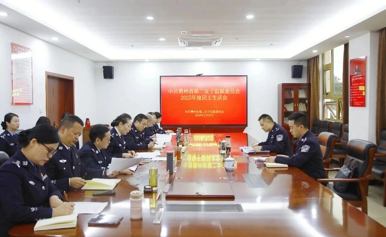 2月25日,贵州省第二女子监狱党委召开2025年度民主生活会,深入学习贯彻习近平新时代中国特色社会主义思想,全面贯彻落实党的二十届四中全会精神,锲而不舍落实中央八项规定精神,推进作风建设常态化长效化,以优良作风凝心聚力、干事创业。省监狱局党委委员、副局长刘学宽到会指导并作点评讲话,监狱党委书记、监狱长夏灵主持会议,监狱办公室、政治处、纪委有关同志以及党员民警代表列席会议。