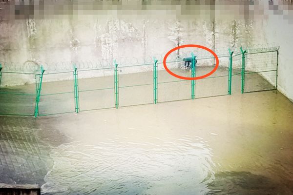 暴雨和冰雹仍在肆虐地下着!监狱低洼处围墙告急!