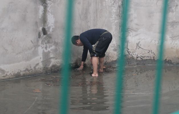 今天下午16时45分左右,晴朗的天空忽然下起了瓢泼暴雨,伴着栗子般大小的冰雹从天倾盆而降。瞬间大暴雨很快席卷了都匀监狱整个监狱驻地,低洼处立刻形成大面积积水,冰雹也在地上、积水中形成厚厚一层。监狱警犬犬舍旁有一处低洼地带,处在围墙拐角处,这场突如其来的暴雨瞬间冲刷出许多杂物,加上厚厚的冰雹,排水通道被完全堵死,造成该区域大面积积水,积水水位约有半米深。