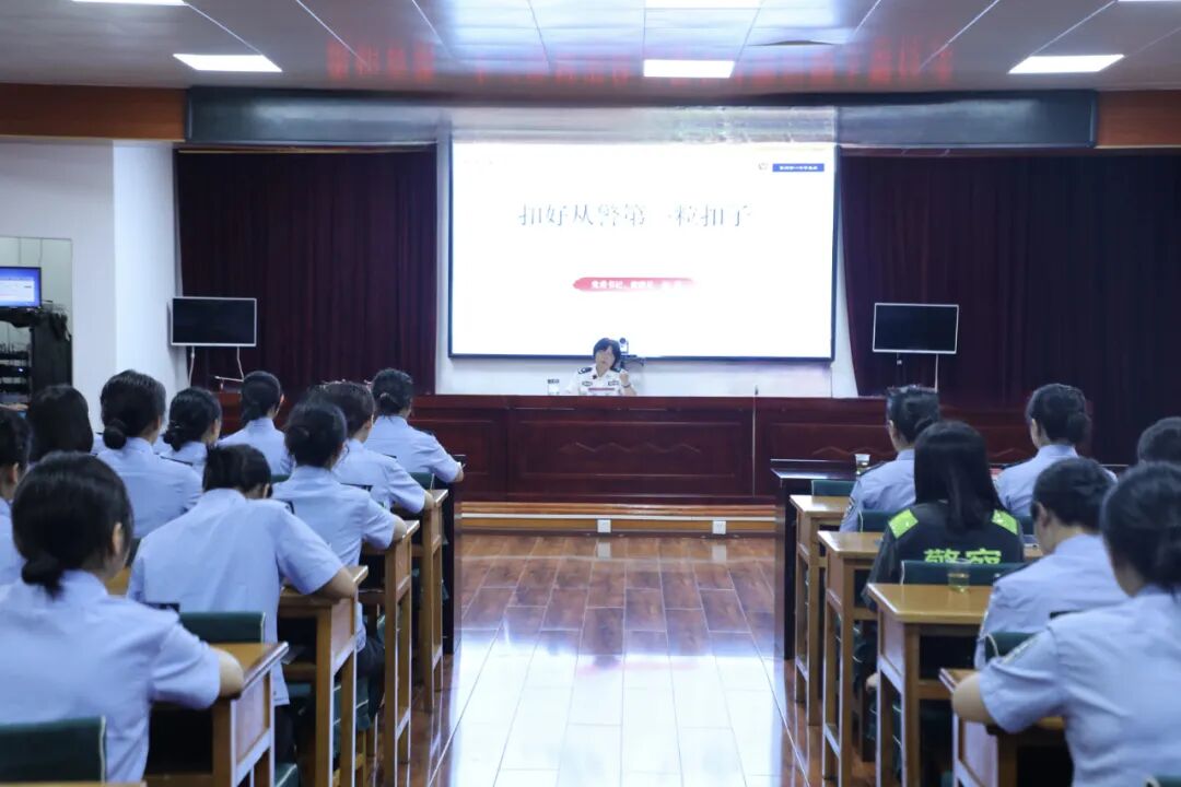 7月16日,省第一女子监狱党委书记、监狱长杨芳以《扣好从警第一粒扣子》为题,向新入职民警分享自己从警多年的感悟和体会,并就如何树立正确的世界观、人生观、价值观进行授课。