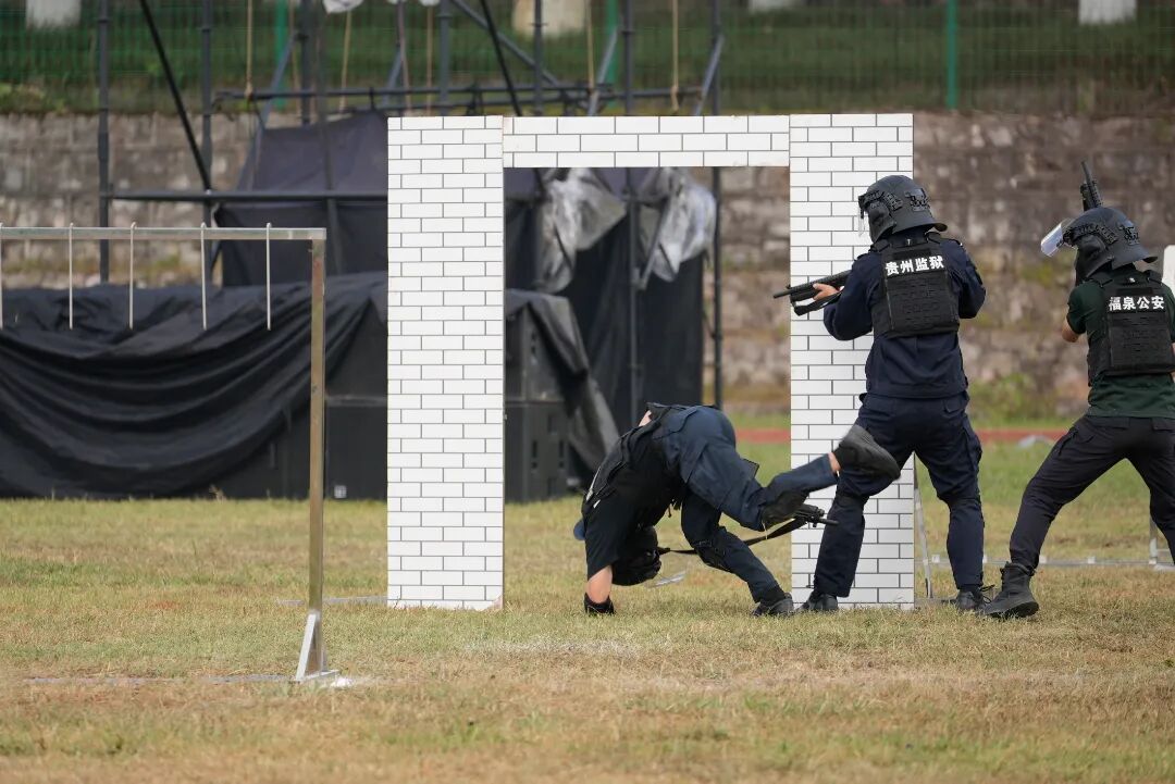 二、以练为战:守护安全防线当下。特警队肩负着警戒执勤、武装巡逻、应急处突等核心使命。为确保在任何情况下都能迅速形成有效处置力量,队伍坚持“练为战、战必胜”的原则,建立了系统化、高强度的常态化训练体系。在2024年8月26日,福泉监狱特警队作为重要力量,参与了在平坝举行的 “贵州省司法行政系统2024年实战大练兵汇报演练”,该演练中,特警队与多警种深度协同,成功完成多个实战科目,集中检验并彰显了其在一体化联合作战中的核心战斗力。