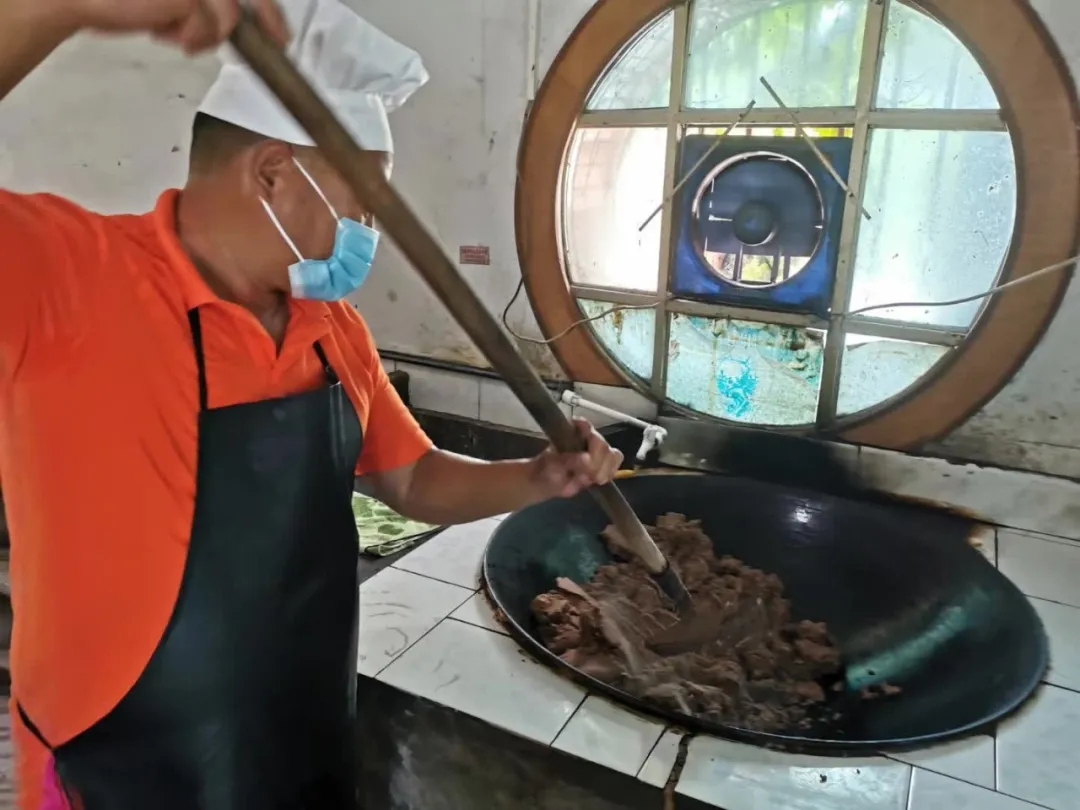 中秋临近,在福泉监狱老办公区的食堂里,退休职工刘系英和她的同事们正在忙着制作月饼。从最初在监狱老食堂工作开始接触制作月饼,跟着老师傅年复一年学习,制作月饼已25年,从最初的“食堂中秋美食”发展成为2万人口左右龙昌镇的支柱产业,监狱老食堂的月饼没有任何的机器加工,从切、进、选、做都是纯手工制作,刘系英和同事们见证着“月饼小镇”的成长,也传承着美食味道。