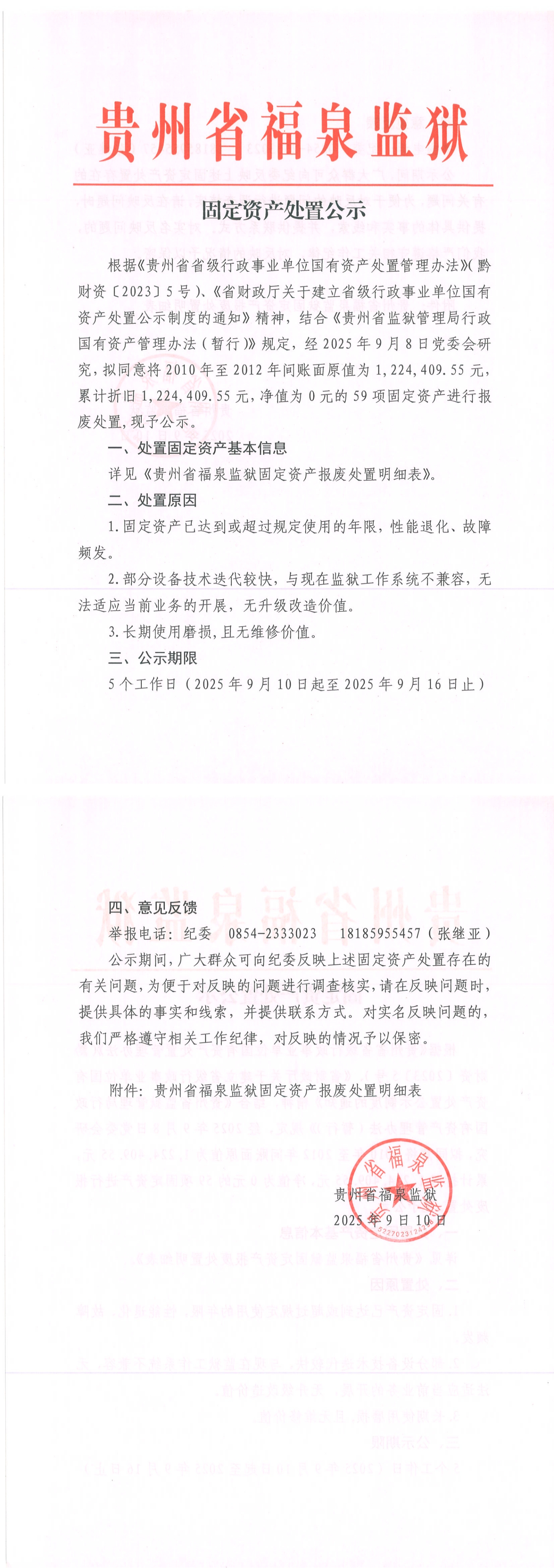 附件:贵州省福泉监狱固定资产报废处置明细表.xls