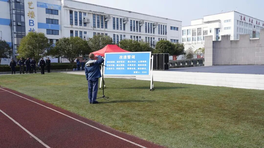 大会在激昂的集体奏唱国歌声中正式开始。千余人肃立高歌,雄壮的旋律汇聚成磅礴的力量,完成了对全体人员身份与责任的第一次集体唤醒。紧接着,在改造积极分子代表领誓下,现场响彻“认罪悔罪、守法守规、励志新生”的铮铮誓言。这如同一声洪亮的开课铃与出发号,以庄严的仪式感,为“新生第一课”奠定了严肃而充满希望的基调,明确了这堂课的核心命题。