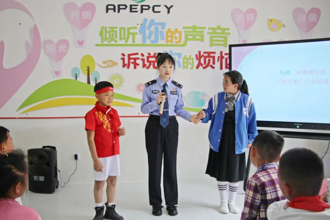6月1日清晨,安龙县海庄小学舞台上,由海安监狱民警和孩子共同合唱的节目《长江之歌》正在进行。表演的孩子们情绪饱满,唱出的旋律悠扬动人。紧接着,一首诗歌朗诵《在红旗下启程》将活动气氛推向高潮。孩子清脆的童音与民警昂扬的声调交织着,一同发出青春最强音:不忘初心,青春朝气在;志在千秋,百年仍是少年!为协助海庄小学办好此次儿童节活动,丰富孩子们的节日生活,此前在监狱团委牵头下,民警利用业余时间多次来到小学,教孩子们唱歌,与孩子们一同排练。监狱团委副书记罗钰这样介绍到:“无论是合唱的曲目,还是朗诵的诗歌,我们都经过多次精心挑选,确保符合孩子们身心发展特点,力求为他们提供成长路上的正面引导。”当日下午,在安龙县另一所小学——春潭一小的“青爱小屋”里,以“我爱我,我的情绪我做主”为主题的心理团辅正在快乐开展。
