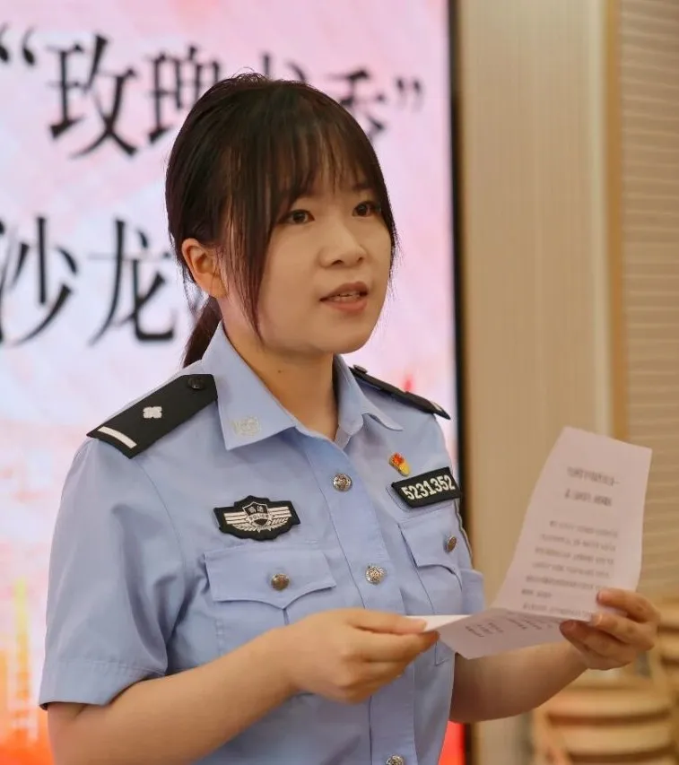 阅读分享环节,民警邱莹莹、谢思嘉共同向大家推荐《山河岁月——回望林徽因》。她们说,回望林徽因的一生,她没有将自己局限在“贤妻良母”的传统角色中,而是勇敢地追求自己的事业与理想。她拖着病体,与梁思成一起跋山涉水考察古建筑,还会为了测绘古建筑穿着旗袍踩着泥泞爬梁上柱,在战火纷飞里把图纸裹在棉衣里逃难。她就像我们身边每一个努力生活的女性:有对美的追求,有对事业的执着,有对家庭的责任,也有在困境里不低头的勇气。