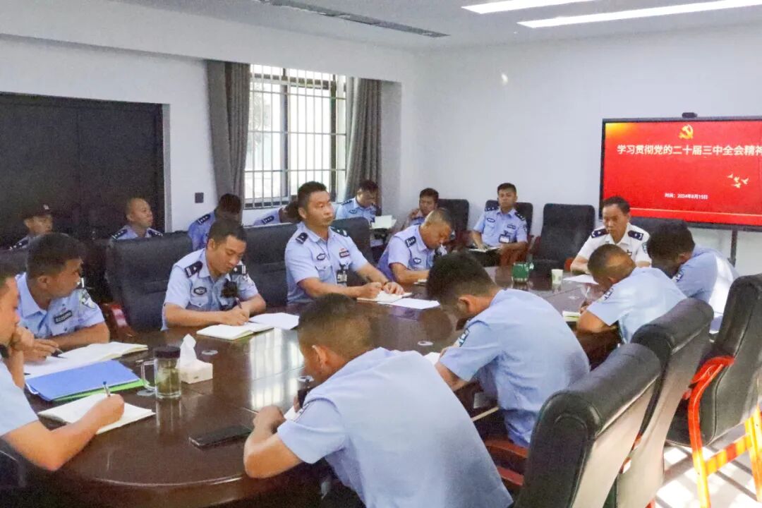 8月16日,为深入学习贯彻党的二十届三中全会精神,五监区党支部组织支部全体民警开展专题学习研讨。会议强调,要以高度的政治自觉和强烈的使命担当学习好宣传好贯彻好党的二十届三中全会精神,聚焦监狱主责主业,推动支部民警振奋改革精气神,把学习成果转化为维护监狱安全稳定的不竭动力,为监狱安全稳定打下坚实基础、提供更好保障。