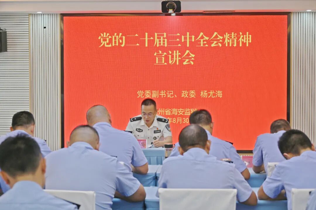 8月30日,海安监狱机关二支部、三监区党支部联合召开学习贯彻党的二十届三中全会精神宣讲会,监狱党委副书记、政委杨尤海作宣讲报告。