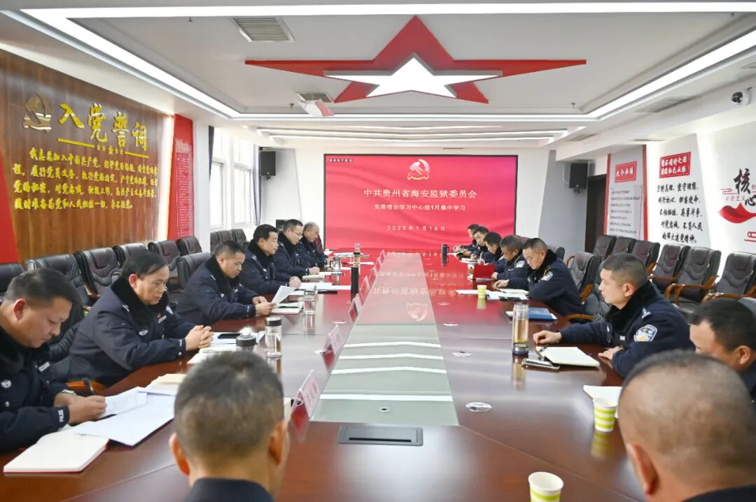 1月16日,海安监狱党委理论学习中心组举行2025年1月集中学习,深入学习习近平总书记在二十届中央纪委四次全会上的重要讲话精神、习近平总书记关于党的自我革命的重要思想、习近平总书记对监狱工作的重要指示批示精神,习近平总书记在中国人民警察队伍警旗授旗仪式上的重要训词,以及中央政法工作会议精神、全国司法厅(局)长会议精神,学习《中国共产党章程》部分章节内容,围绕“学习贯彻习近平总书记在二十届中央纪委四次全会上的重要讲话精神”主题,结合思想和工作实际进行研讨交流发言。监狱党委书记、监狱长刘鹏主持集中学习并作工作要求,党委副书记、政委杨尤海作专题研讨发言。