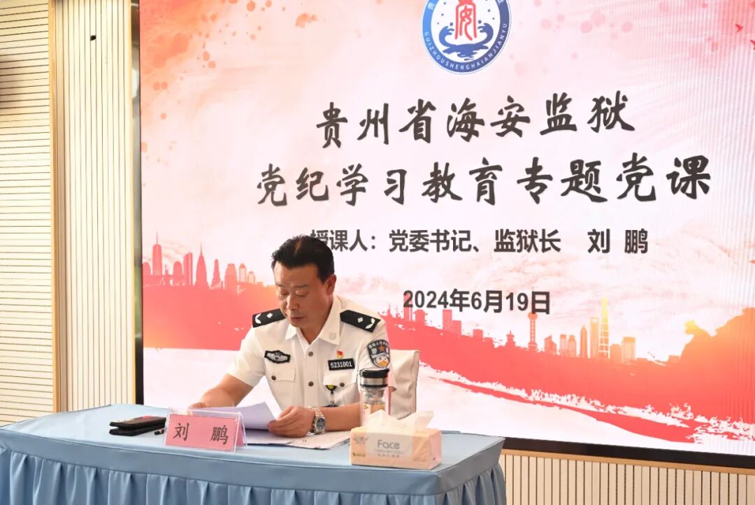 为扎实推进党纪学习教育,6月19日,海安监狱党委委员、书记、监狱长刘鹏以《深入学习贯彻习近平总书记关于加强党的纪律建设的重要论述,深化党纪学习教育,扛起政治责任、筑牢廉洁自律防线》为题,为监狱党委班子成员、中层以上领导干部讲授党纪学习教育专题党课。