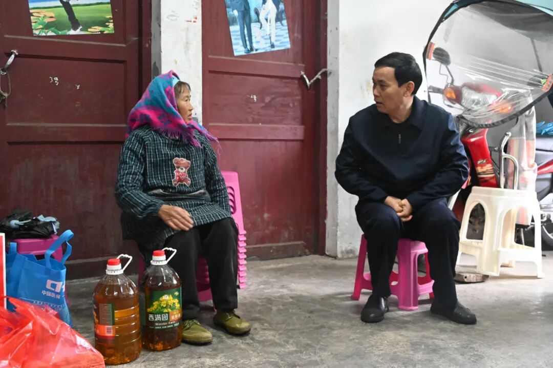 这一边,义诊关爱正及时;另一头,入户走访暖人心。吴学隆走进联系户韦通美家中,主动向韦通美传达了来自海安监狱党委的关怀和问候,向她详细了解其家庭的生产生活、经济收入、子女就学就业等情况。吴学隆还向她送去生活物资,叮嘱她要保重身体,勉励她要乘着乡村振兴的东风,和家人一同创造更加幸福美好的生活。
