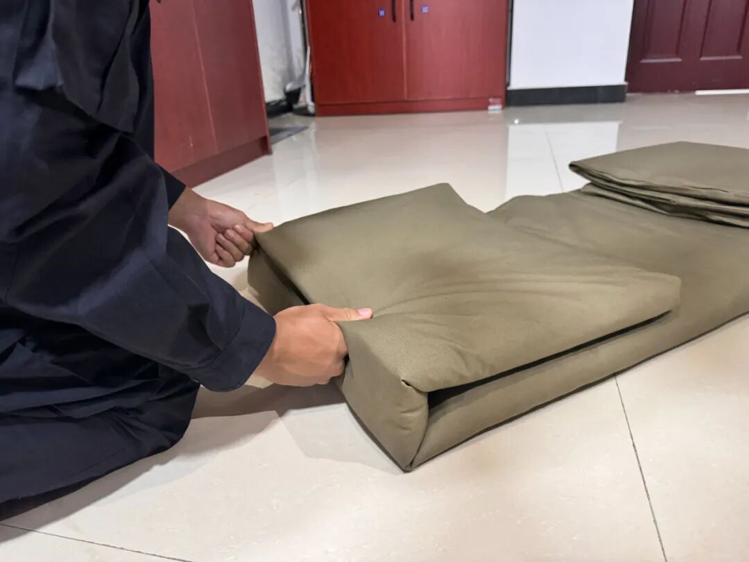 当前,海安监狱新招录的13名民警正在贵州省司法警官学校接受首授培训。为帮助战友尽快掌握内务整理要领,有过从军经历的新警杨超、李显阳主动站了出来,将总结的叠被硬核“五字诀”倾囊相授——