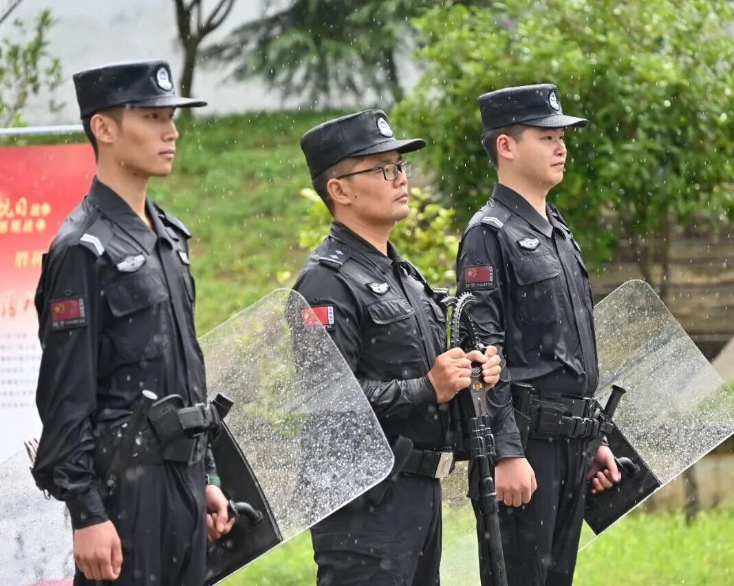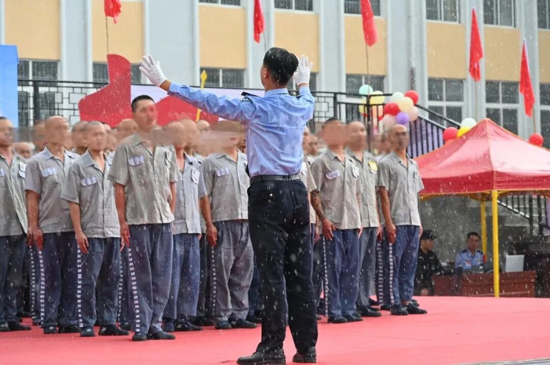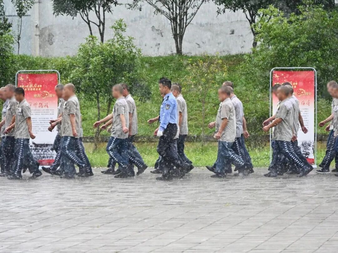 当比赛进行到高潮时,天空突然下起瓢泼大雨,豆大的雨点密集落下,瞬间浇透队列中的每一个人,却浇不灭参赛者的热情——无论是现场的民警,还是队列中演唱的罪犯,无一人退缩。场上,指挥民警用坚定的目光和有力的手势,鼓励着参演人员,嘹亮的歌声与雨声交织成一曲特殊的“奋进之歌”;场下,观赛罪犯服从指令,井然有序,充分体现了监狱良好的管理水平和罪犯遵规守纪的改造面貌。