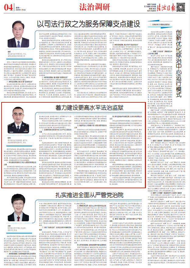 2025年11月3日,《法治日报》法治调研版刊发贵州省司法厅党委委员、副厅长, 省监狱管理局党委书记、局长陈刚的署名文章《着力建设更高水平法治监狱》。