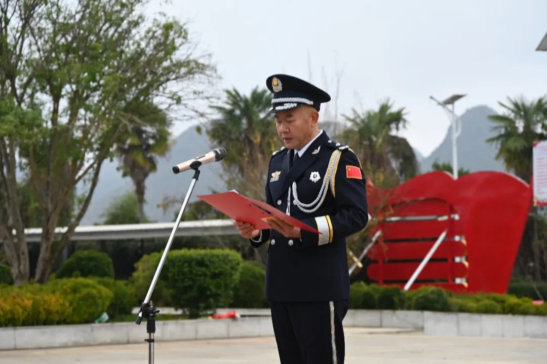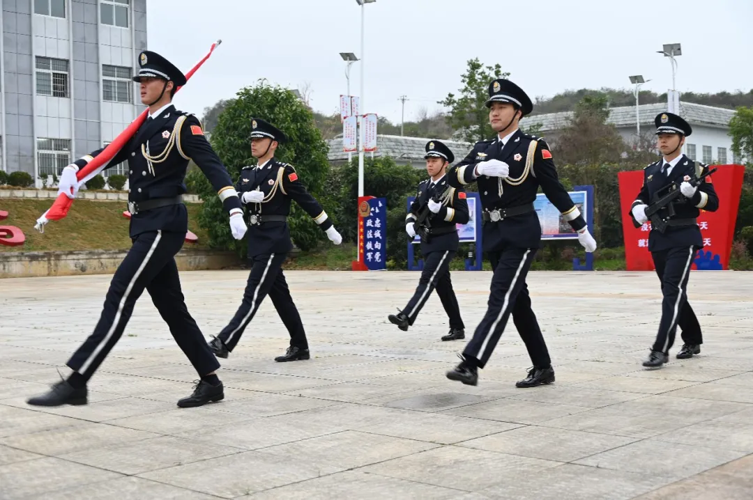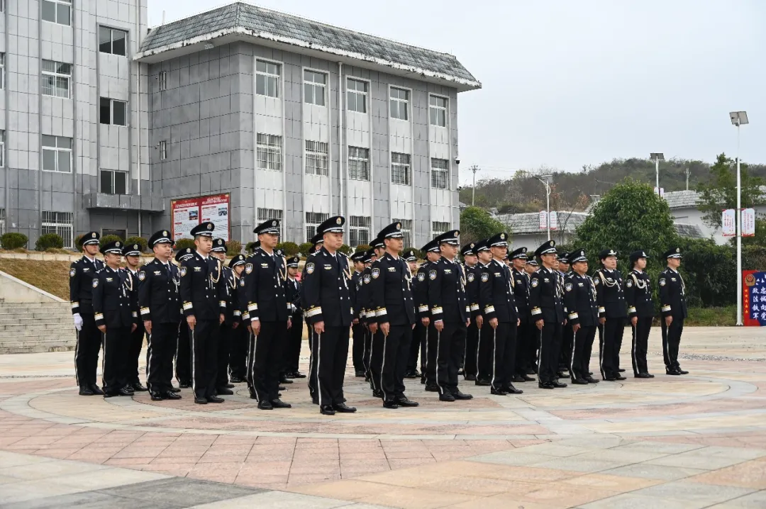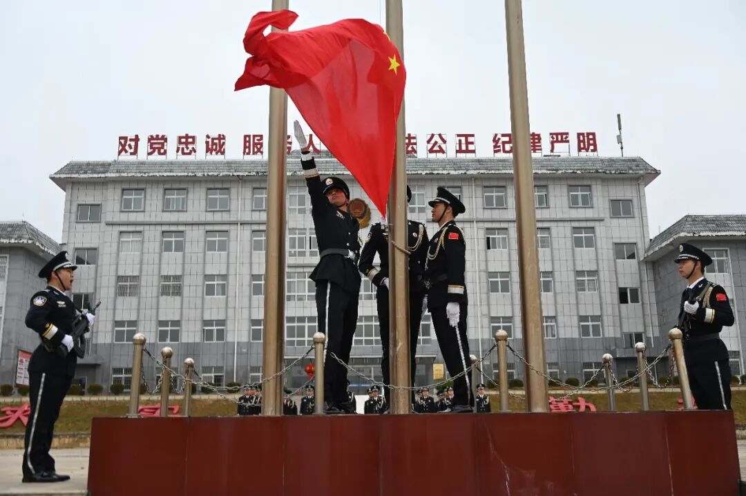 伴随着《义勇军进行曲》激昂的旋律,五星红旗冉冉升起。全体民警肃立注目,齐声高唱国歌,气氛庄重肃穆。