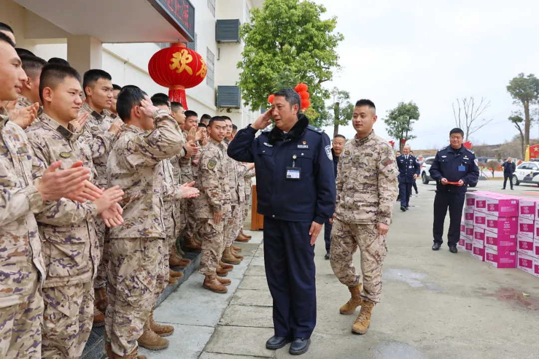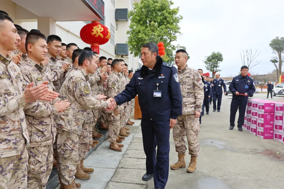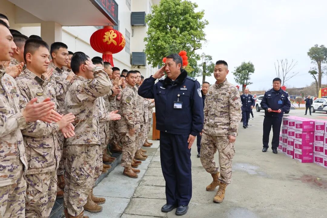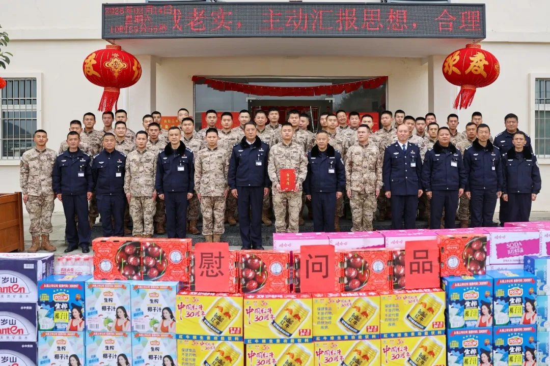 2月14日,春节将至,年味渐浓。海安监狱党委书记、监狱长龙啟良率监狱党委班子成员及相关科室负责人一行,带着全监民警职工的深情厚谊,来到驻监武警执勤中队营地,亲切看望慰问坚守一线的武警官兵,向他们致以新春的问候和诚挚的感谢。