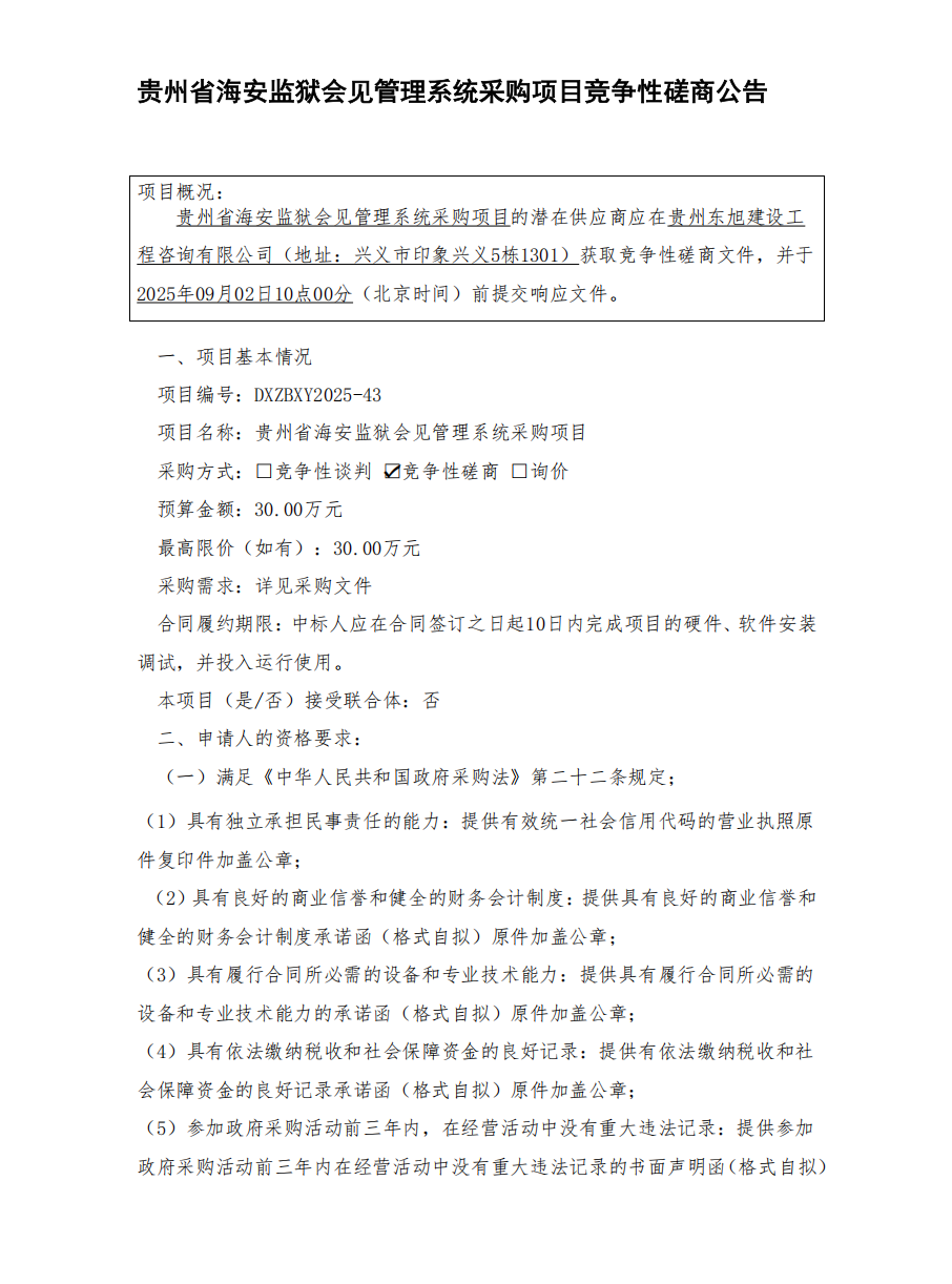 贵州省海安监狱会见管理系统采购项目竞争性磋商公告