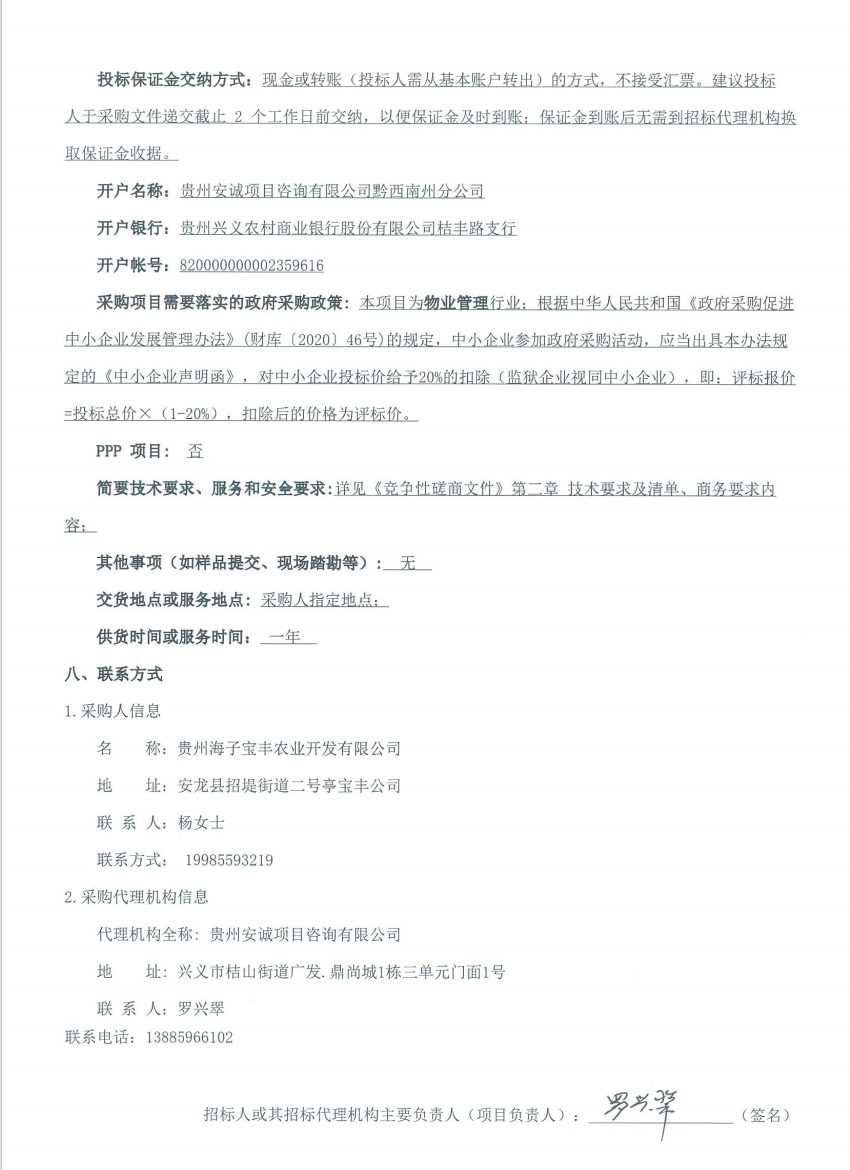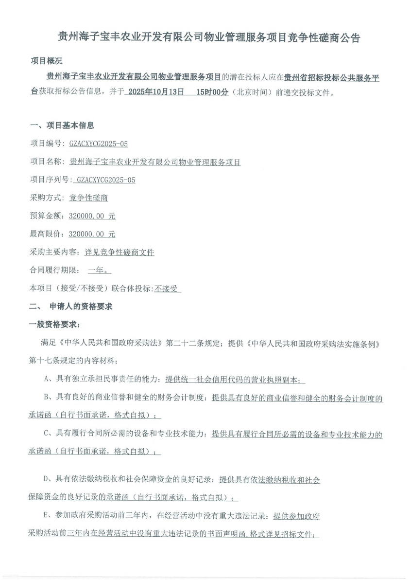贵州海子宝丰农业开发有限公司物业管理服务项目竞争性磋商公告