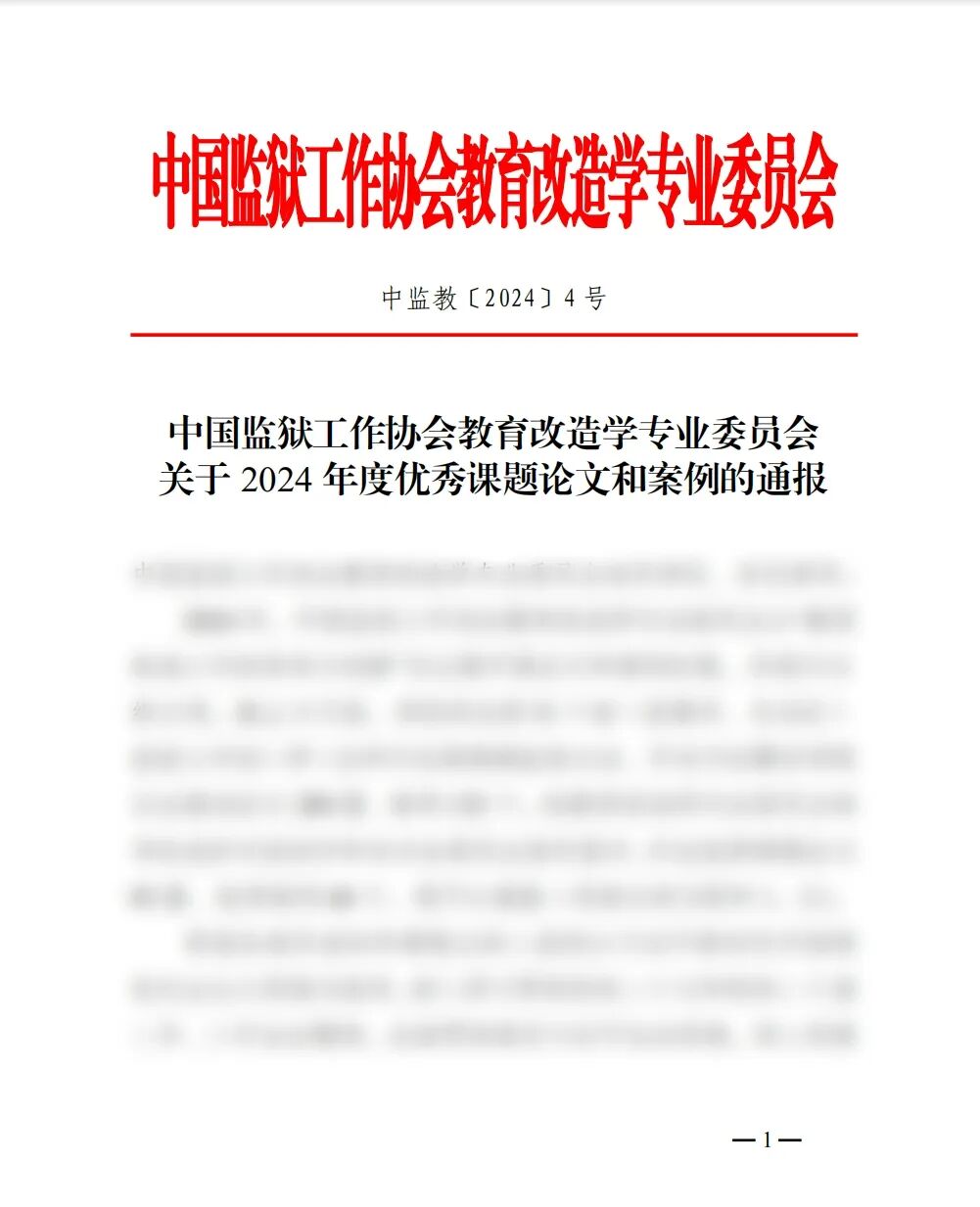 2024年,中国监狱工作协会教育改造学专业委员会以“教育改造工作的传承与创新”为主题开展论文和案例征集,并进行分级立项。