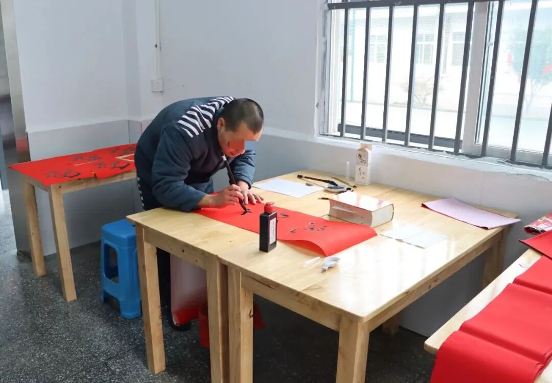 除夕当天,监狱组织罪犯写福字、编春联,参与春节氛围场景布置,引导他们身临其境地感受中华优秀传统文化的魅力,助力改造新生。