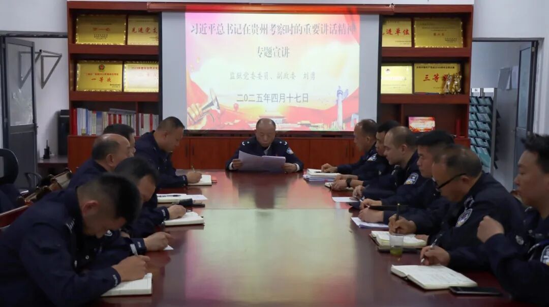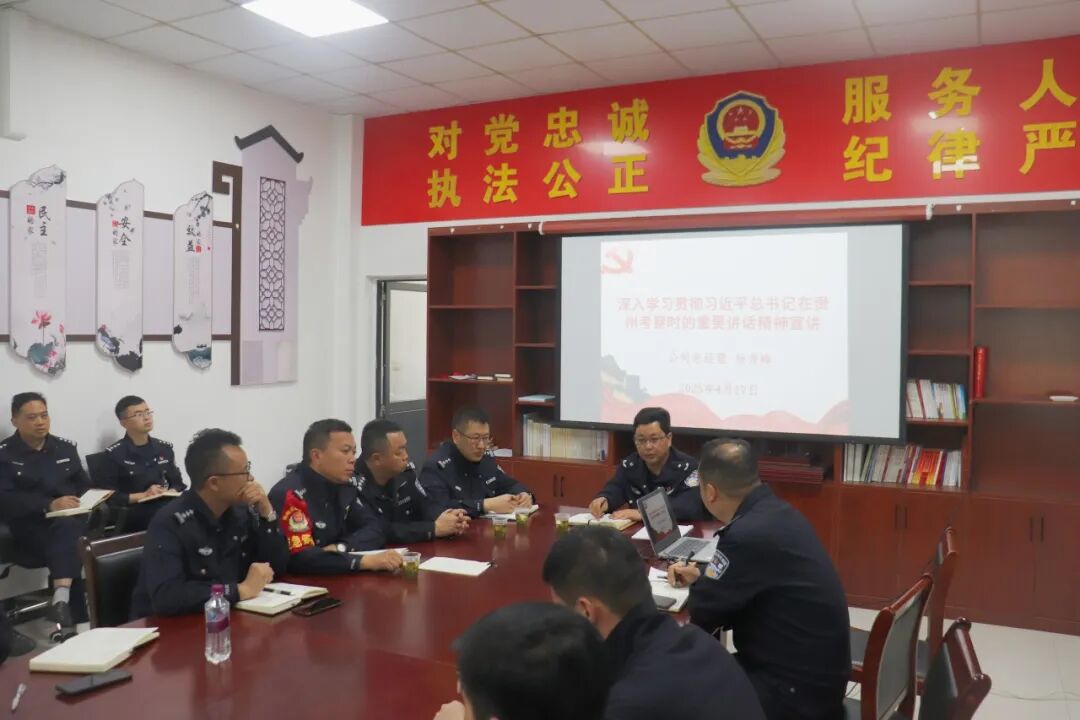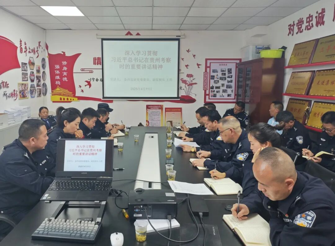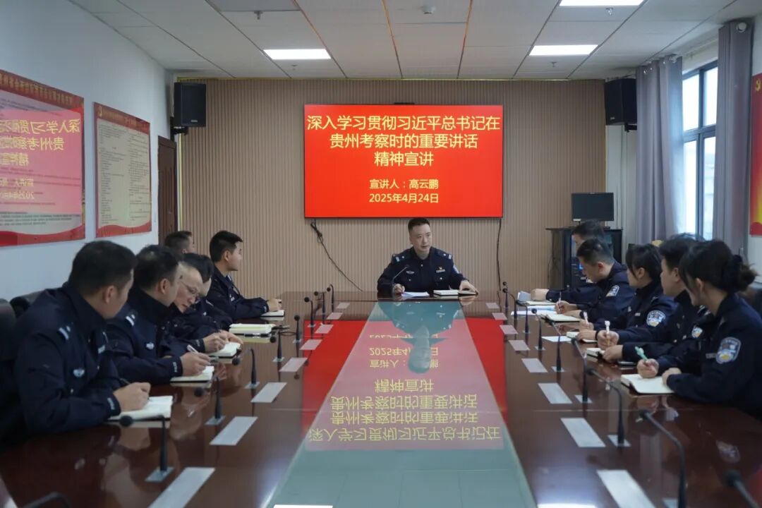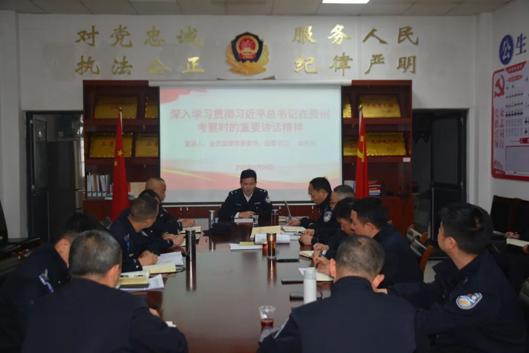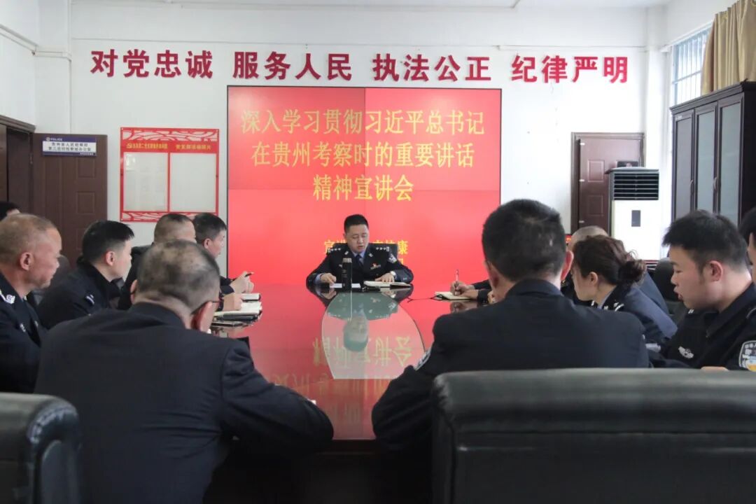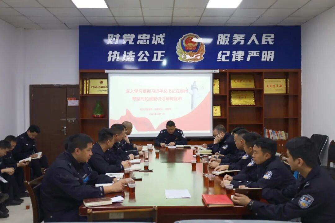 各党支部民警认真聆听、用心领会,现场学习氛围浓厚。大家纷纷表示,将以习近平总书记在贵州考察时的重要讲话精神为行动指南,立足本职岗位,坚定信心、苦干实干,稳中求进、善作善成,切实把学习成果转化为推动“五安全一稳定”工作的强大动力,以新担当、新作为、新形象在中国式现代化进程中展现新风采。