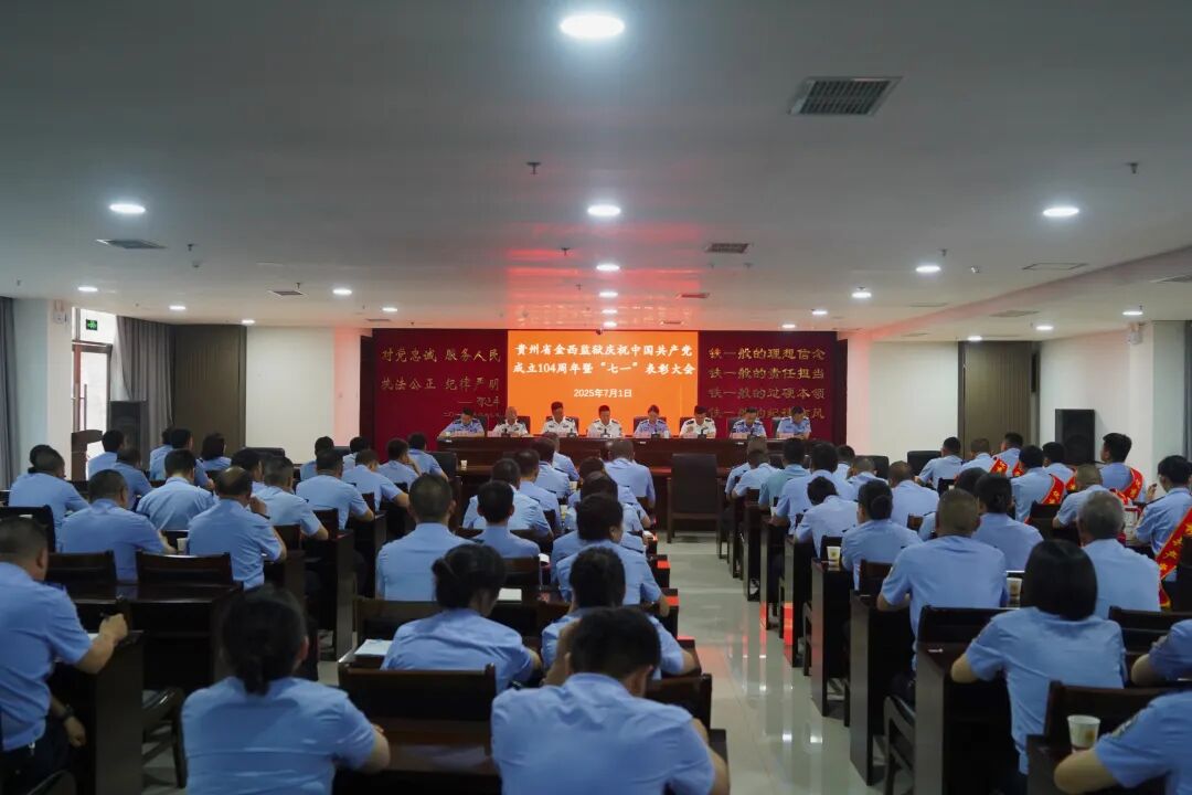 为热烈庆祝中国共产党成立104周年,弘扬伟大建党精神,激励全监民警职工忠诚担当、奋勇争先,7月1日,金西监狱召开庆祝中国共产党成立104周年暨“七一”表彰大会。党委书记、监狱长袁成相讲授专题党课,党委副书记、政委侯小艳主持会议,党委班子成员、各党支部书记、监区支部党员代表、机关全体党员民警(除值班执勤)参加会议。