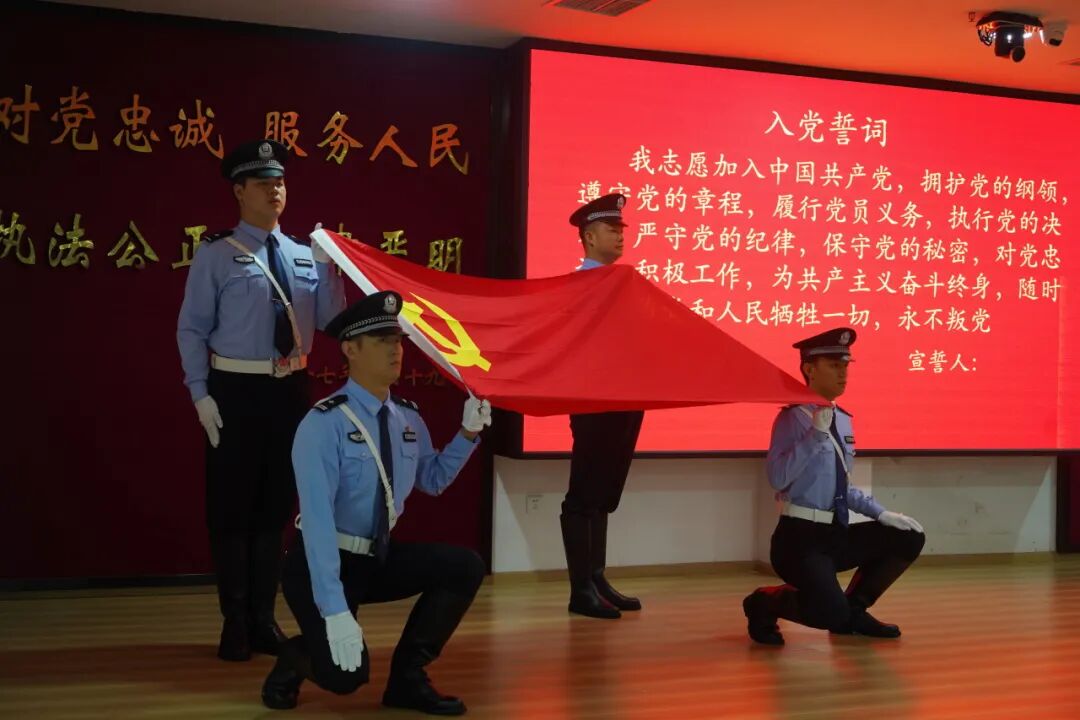 誓言铮铮铭刻忠诚信仰。在党委副书记、政委侯小艳带领下,新党员进行入党宣誓,全体党员重温入党誓词,以掷地有声的宣誓表达对党忠诚的承诺,用铮铮誓言诠释着监狱人民警察的使命与担当。
