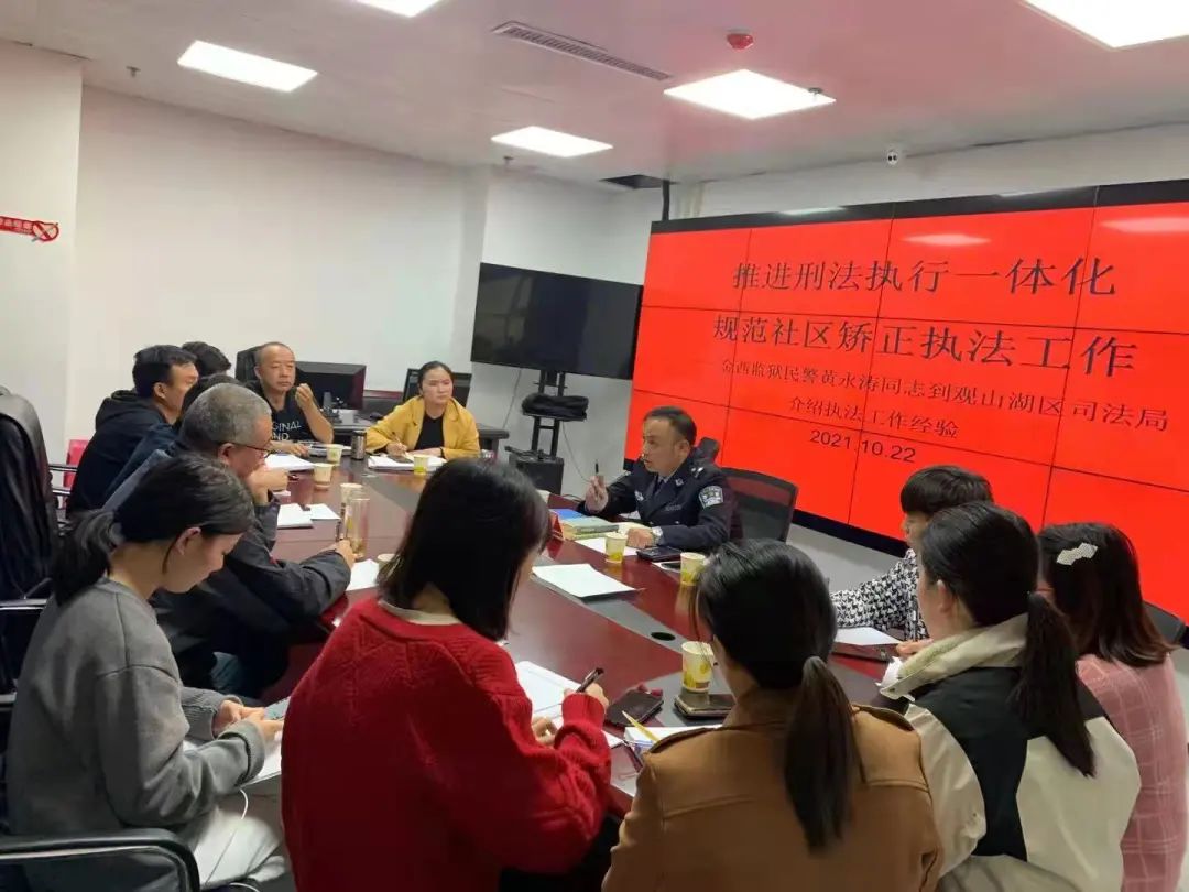 近日,为持续推进刑罚执行一体化建设,拓展监狱教育改造功能,加强与地方司法行政部门的良性互动和优势互补,金西监狱委派四监区民警黄永涛到贵阳市观山湖区司法局开展工作经验交流。
