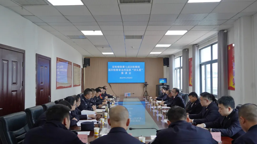 11月20日,省检察院第七巡回检察组赴金西监狱召开巡回检察“回头看”座谈会。巡回检察组组员、监狱部分党委班子成员及相关业务部门负责人参会。