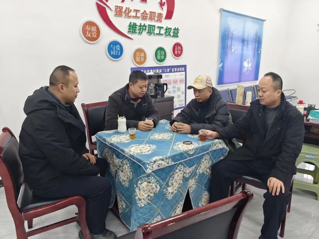 在平寨村村委会办公室,刘勇与村“两委”干部进行座谈。双方围绕基层党组织建设、乡村治理、产业发展、法治宣传等议题展开深入交流。