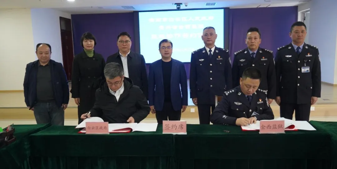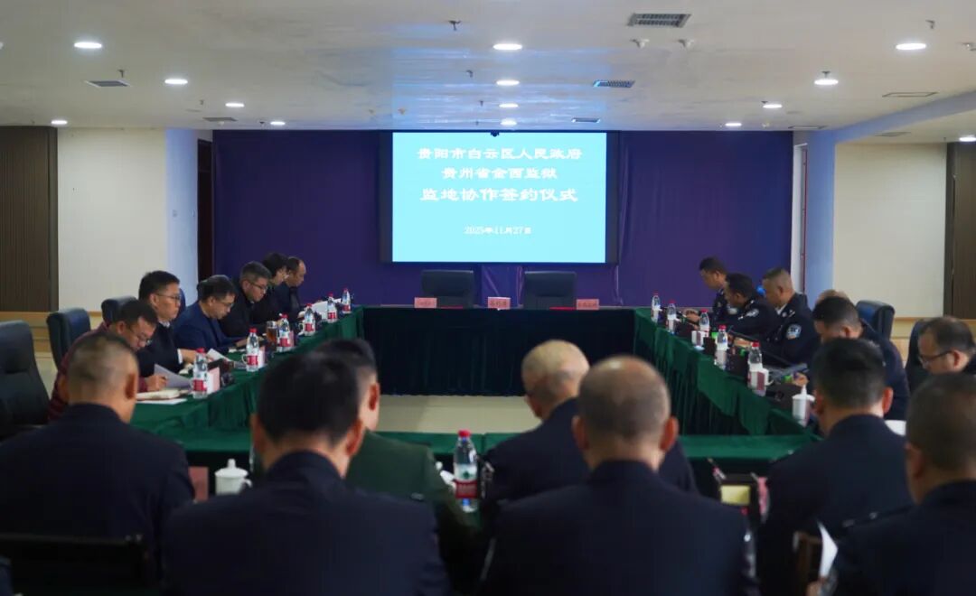 11月27日,贵阳市白云区人民政府与金西监狱监地协作签约仪式成功举行,这标志着双方协作正式迈入制度化、常态化、实效化的新阶段。会上,区政府副区长、区公安分局局长胡晓辉代表贵阳市白云区人民政府,监狱党委委员、副监狱长韦桂康代表金西监狱,共同签订《监地协作协议书》。此次协作以“三个建立、三个着力、三个落实”为系统框架,推动监地关系从地理相邻、简单往来升级为机制化、深层次的战略合作,为区域治理现代化、监管安全持续稳定注入新动能。