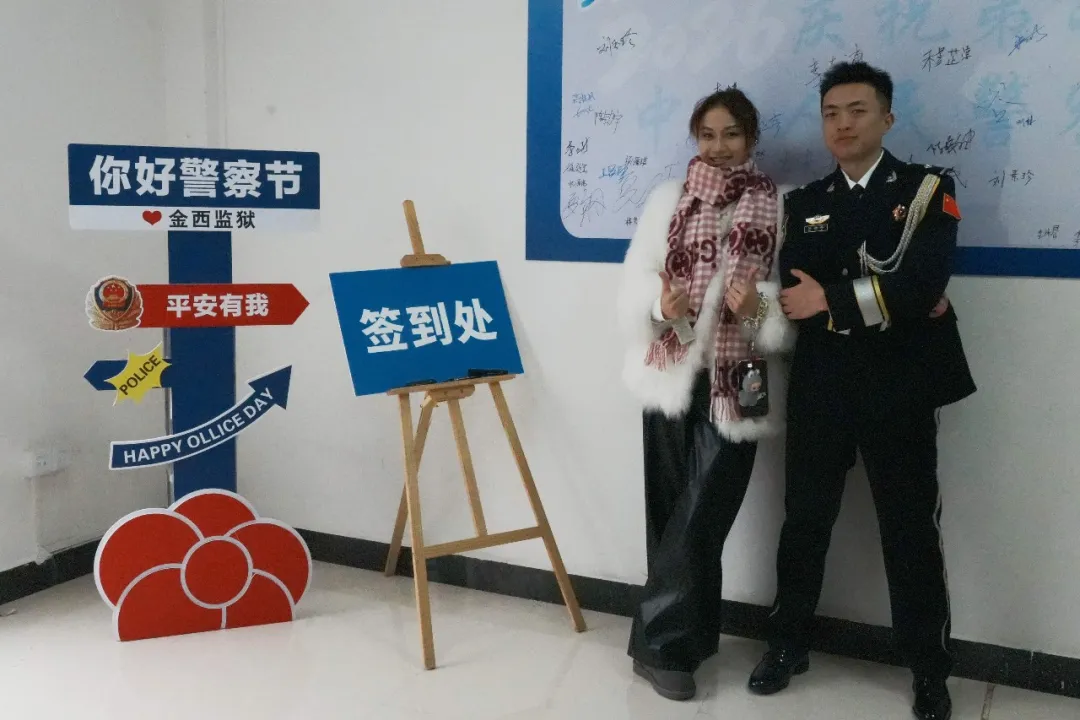 此外,监狱以“筑牢忠诚警魂”为主题组织召开座谈会,党委班子成员与民警代表齐聚一堂,共同回顾从警初心,分享履职感悟,畅谈使命责任。活动现场还设置了“我和警旗合个影”、“签名墙”等主题拍照打卡点。家属们纷纷驻足,与警旗、与亲人合影留念,记录下这充满意义的时刻,笑容与自豪洋溢在每个人的脸上。