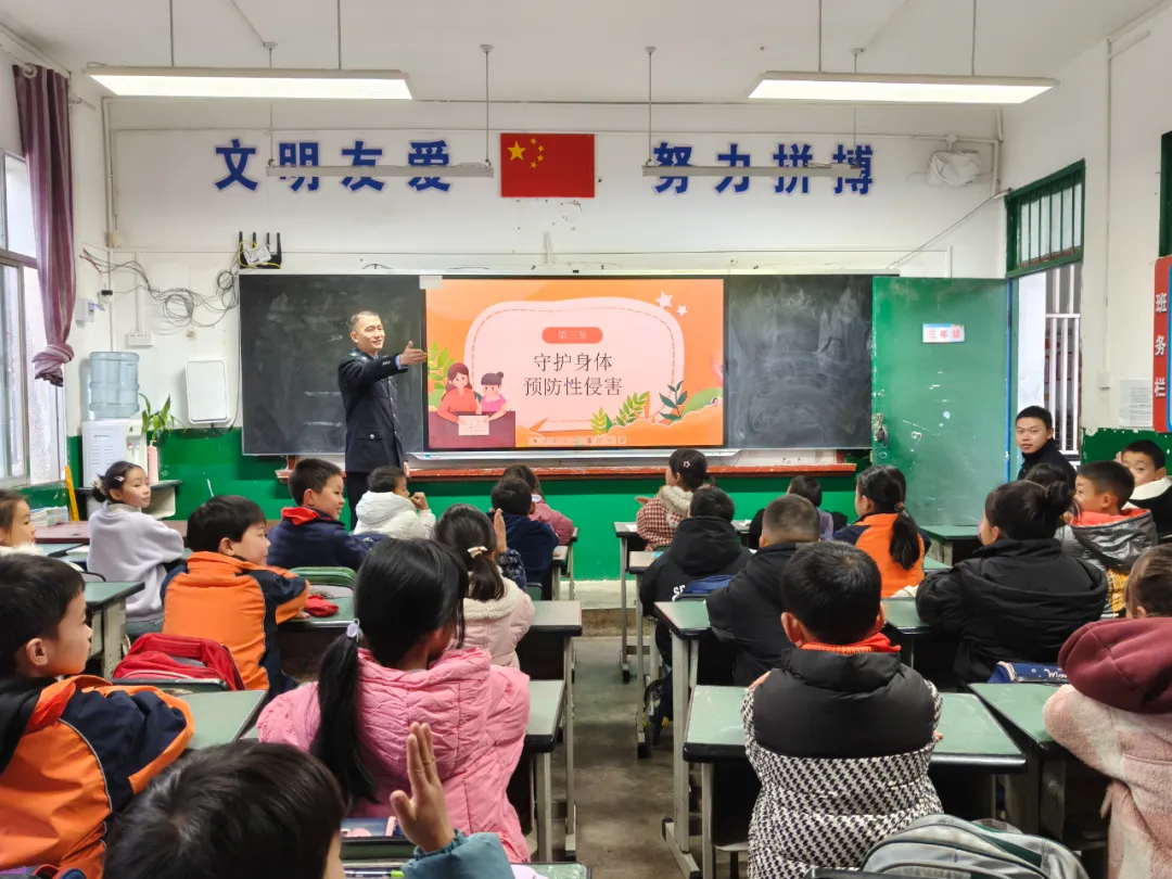 为进一步强化未成年人法治意识,筑牢校园安全防线,12月29日,金西监狱民警前往贵阳市白云区麦架镇青山小学开展以“安全小卫士”为主题的法治宣讲活动。活动通过沉浸式宣讲、互动式问答等形式,为全体学生带来一堂生动有趣的法治课。
