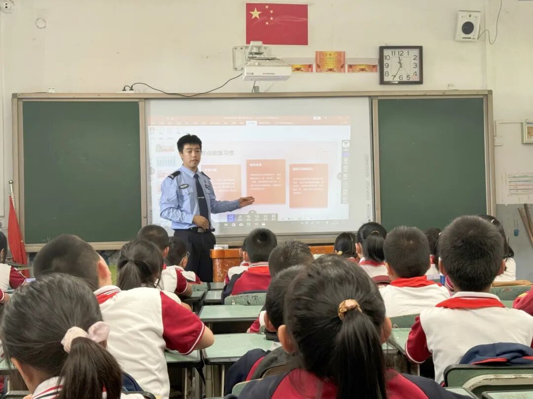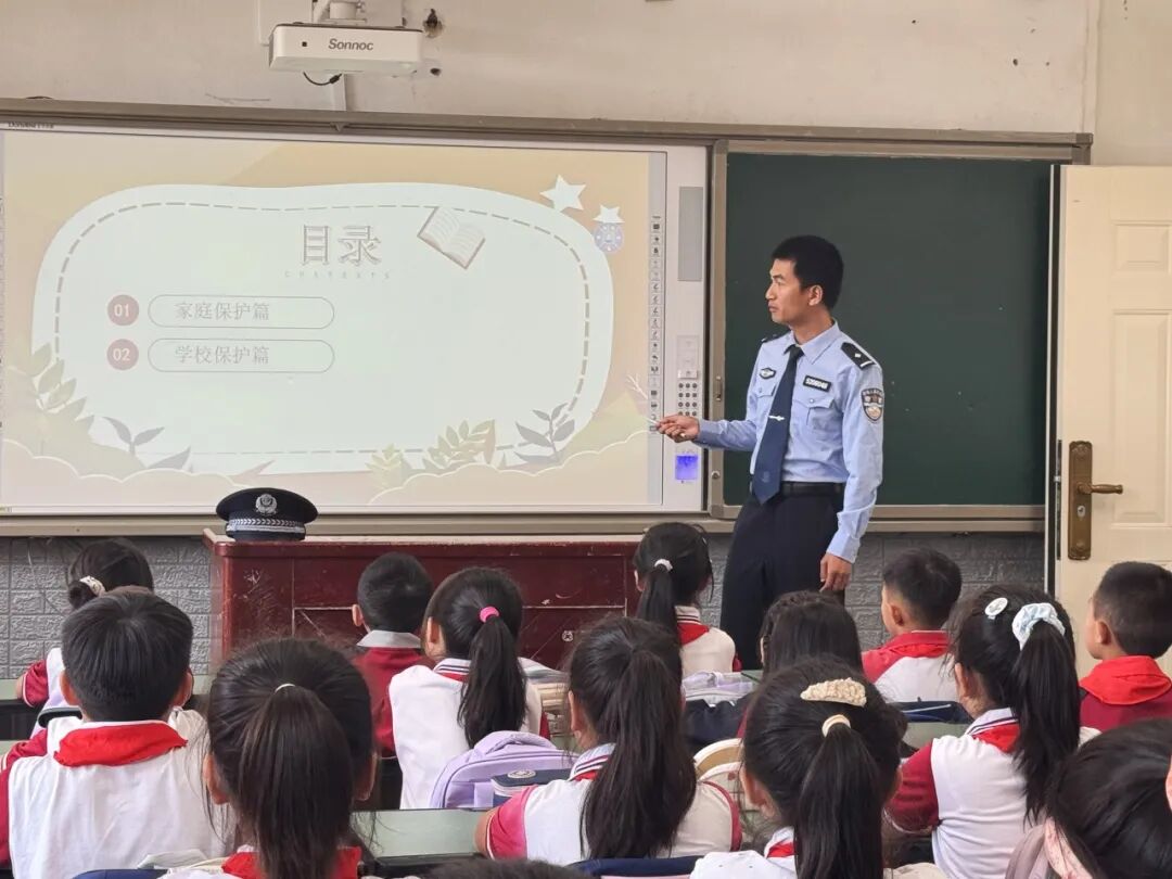 升旗仪式后,金西监狱民警代远强围绕《中华人民共和国未成年人保护法》展开宣讲。他以“六大保护”为框架,用“法律小课堂”的形式,将家庭、学校、社会、网络、政府、司法保护的核心内容转化为生动案例。“未满8岁的小朋友能独自在家吗?”代远强结合“防止儿童沉溺手机入法”等热点条款,通过提问互动引发学生思考,用贴近生活的场景解读法律边界,让抽象的法条变成易懂的“生活指南”,引导孩子们学会用法律武器维护自身权益。