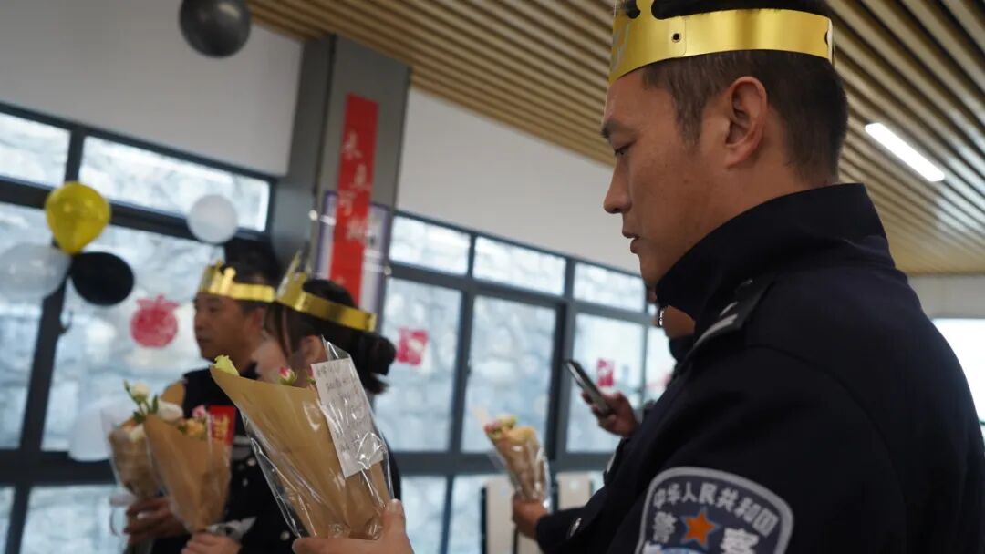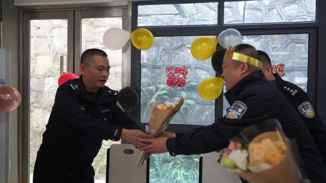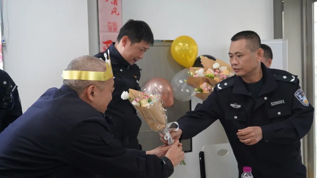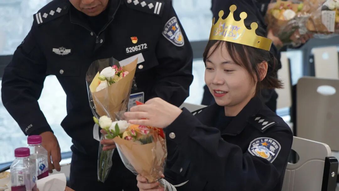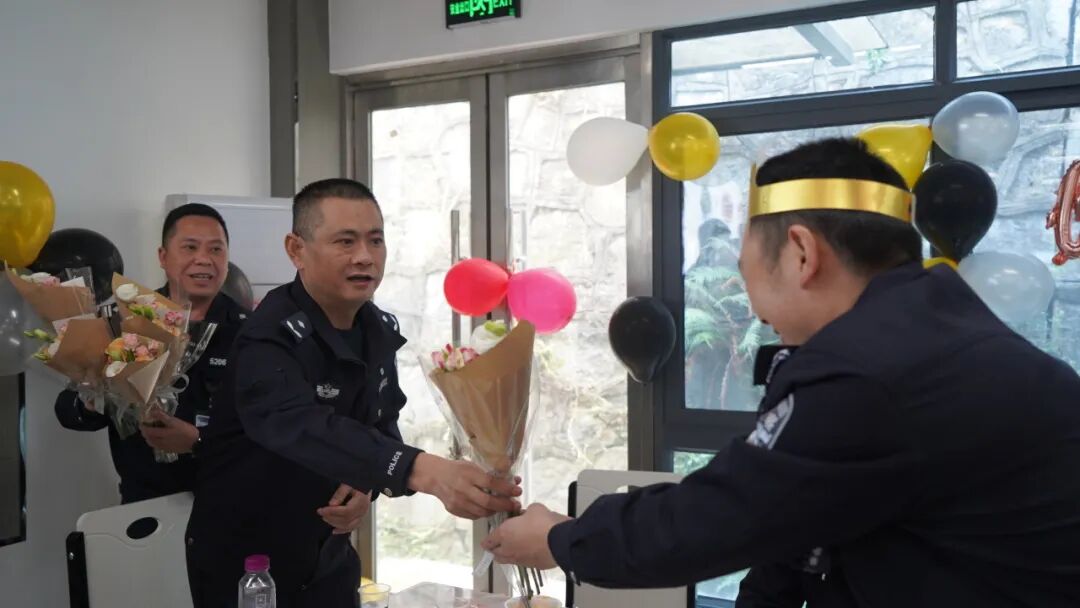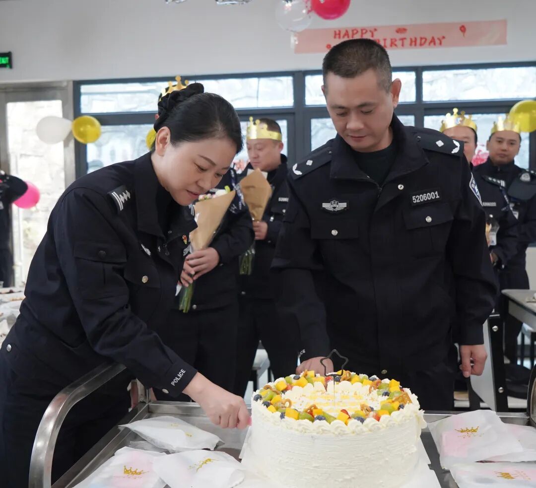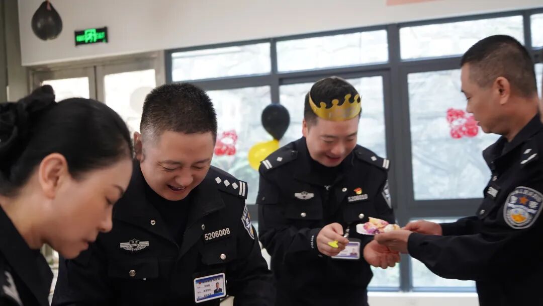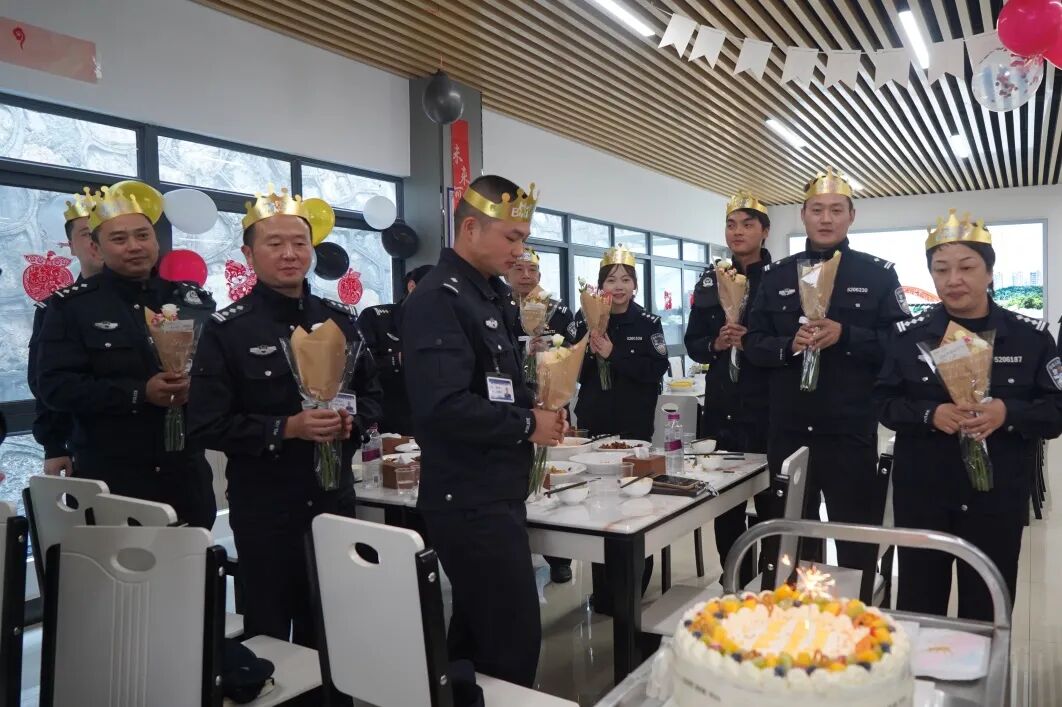 生日会当天过生日的年轻民警动情地说道:“这份心意比蛋糕更甜!”